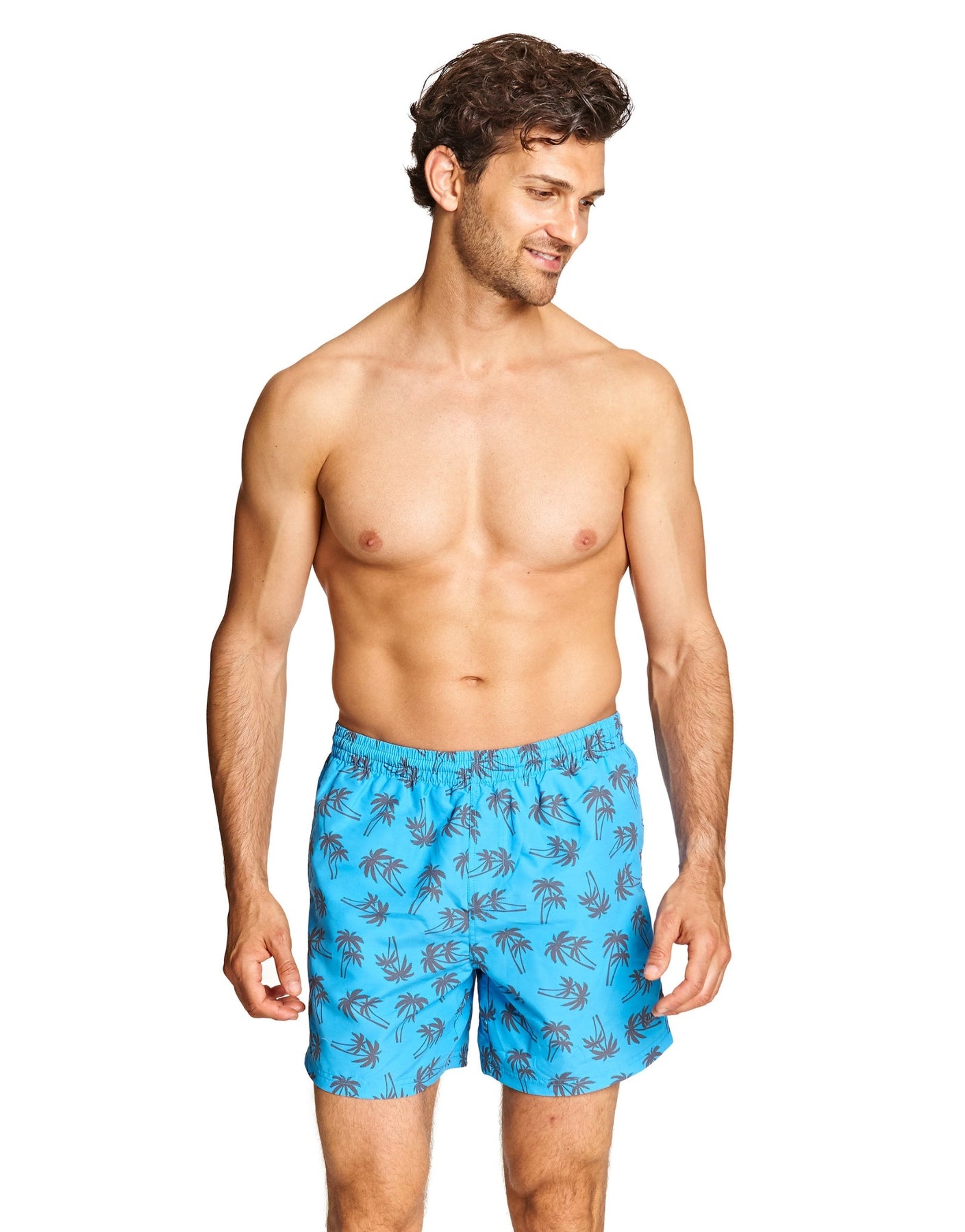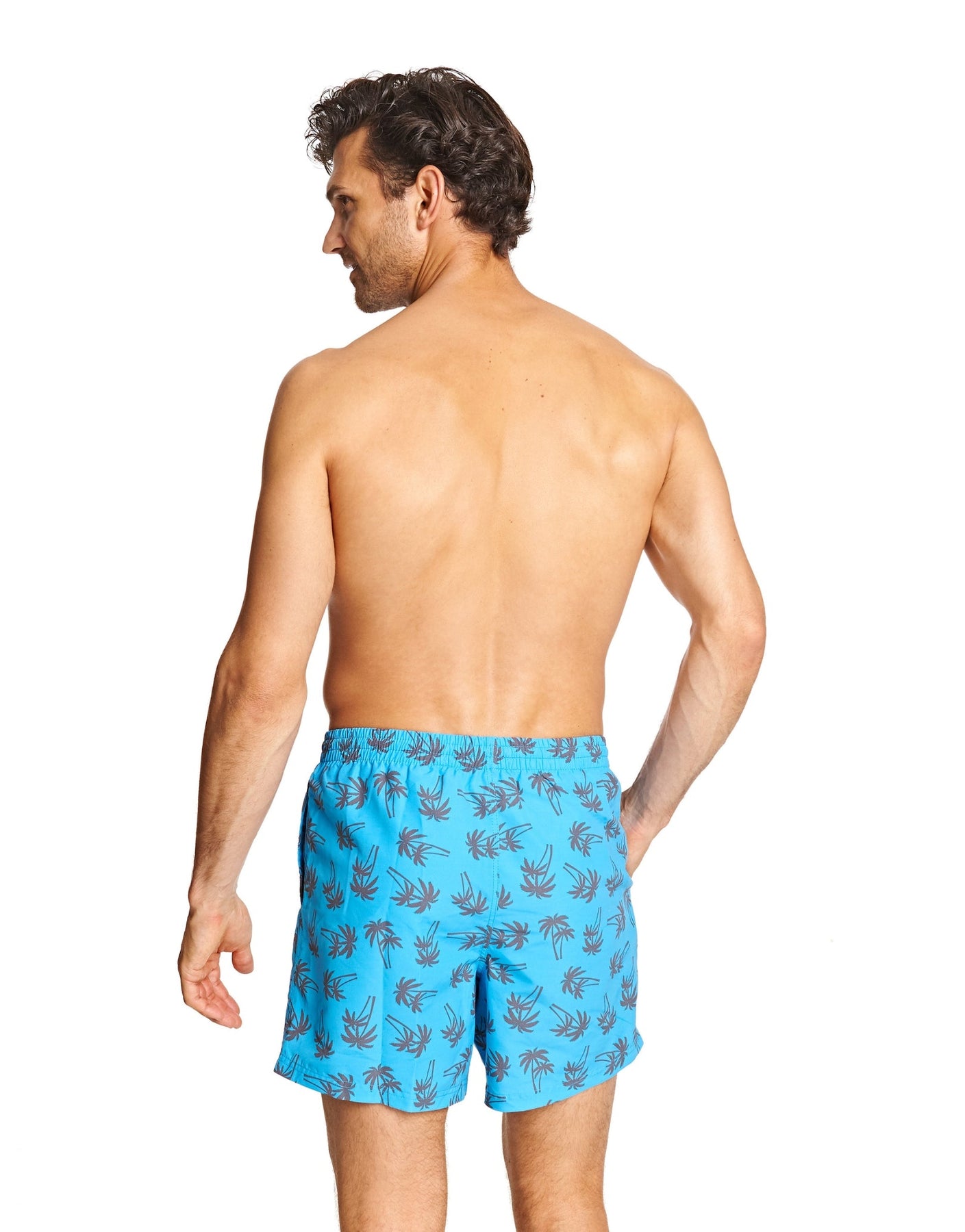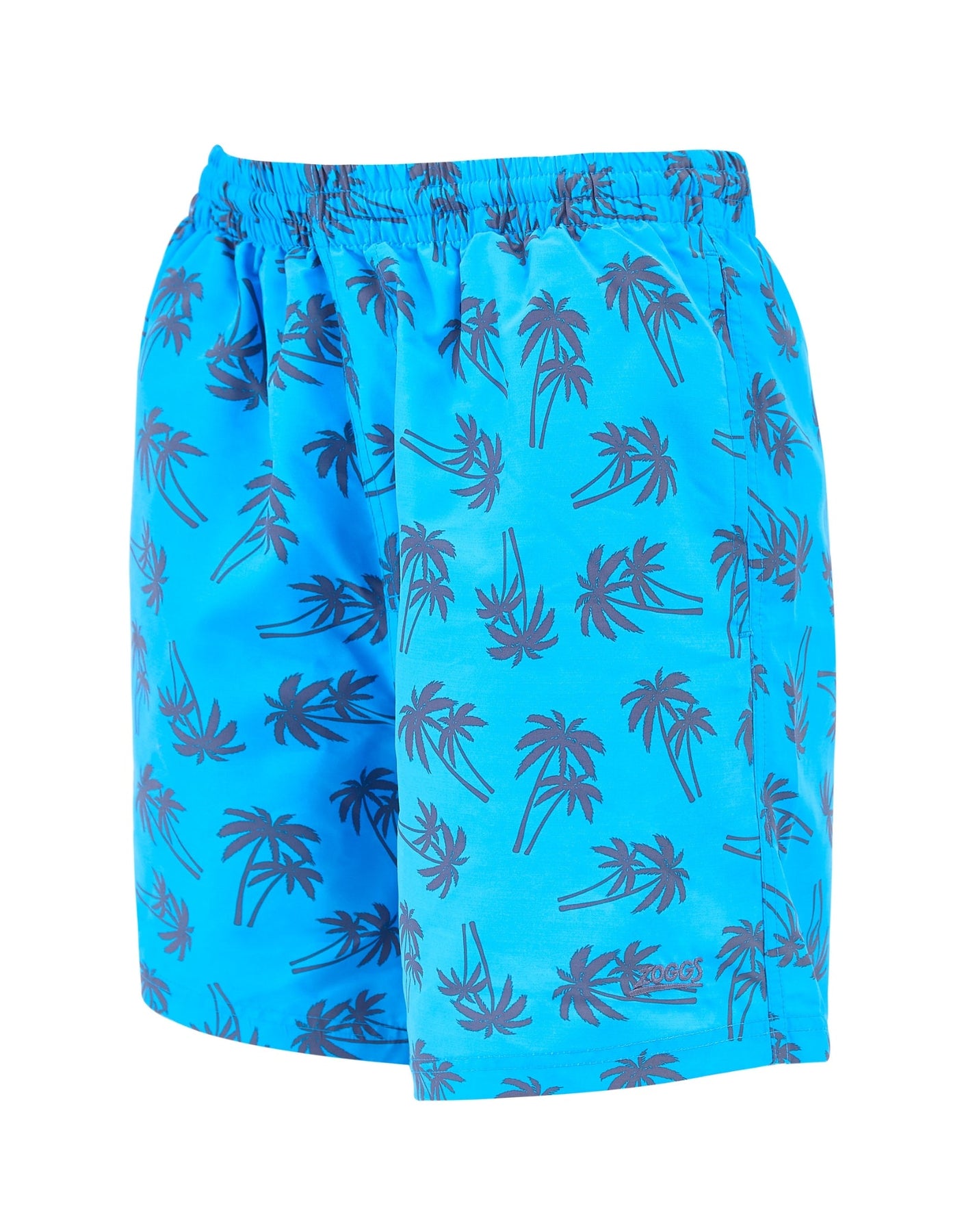 The Balmy Palmy 15" Shorts from Zoggs feature palm patterns in the background of turquoise blue. They have an elasticated drawstring waist for comfort and adjustability and a 15" leg for modest coverage. Made from chlorine-resistant Durafeel™ fabric, it lasts over 750 hours of pool swimming to test your training sessions.