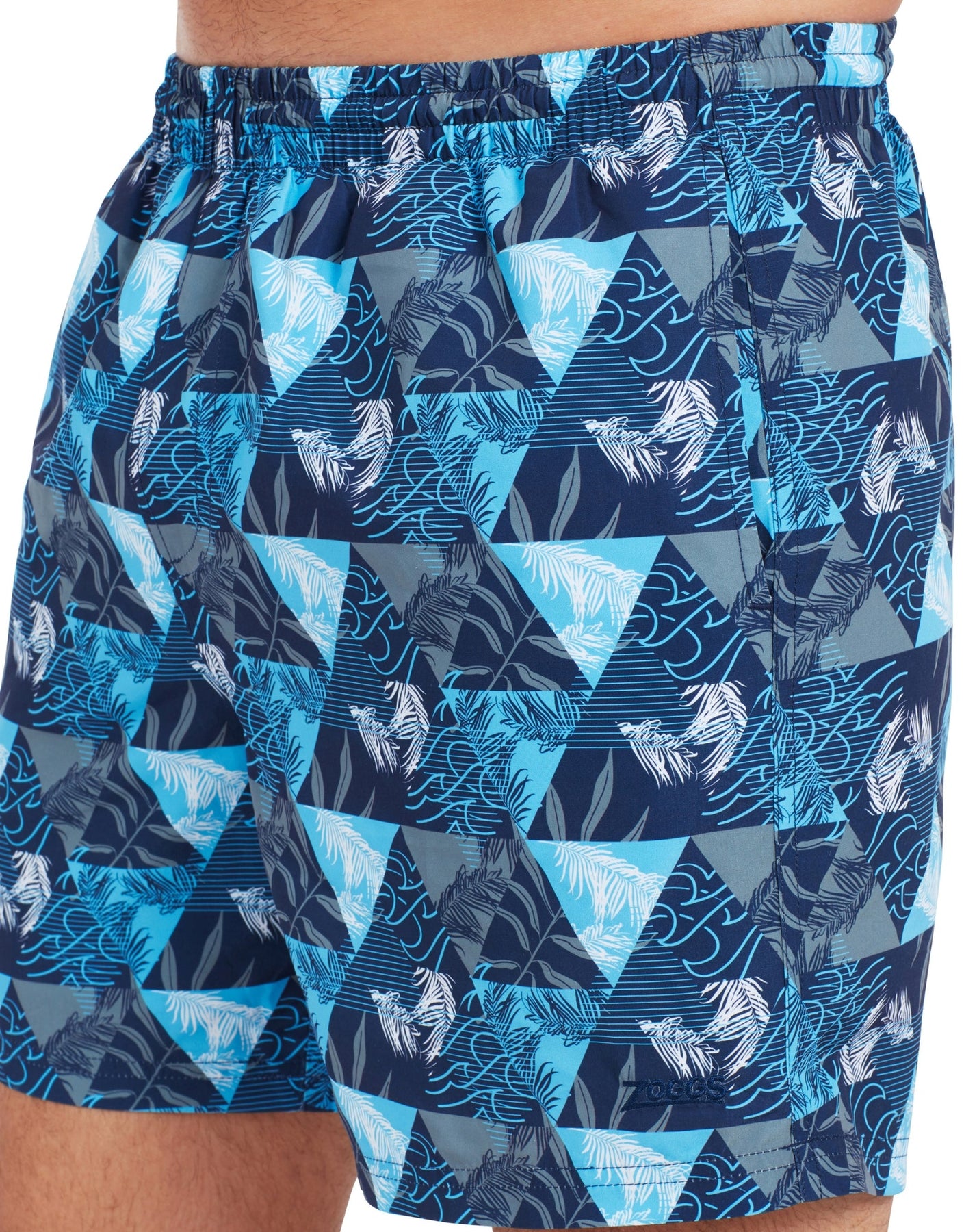The Beachside Print 16" Watershorts from Zoggs are designed with a palm leaf design on a blue base, ideal for swimming in the pool or relaxing at the beach. The drawstring elasticated waist offers a perfect fit, while the mesh lining ensures comfort. The shorts are made from incredibly soft and comfortable Ecodura fabric and provide higher chlorine resistance.