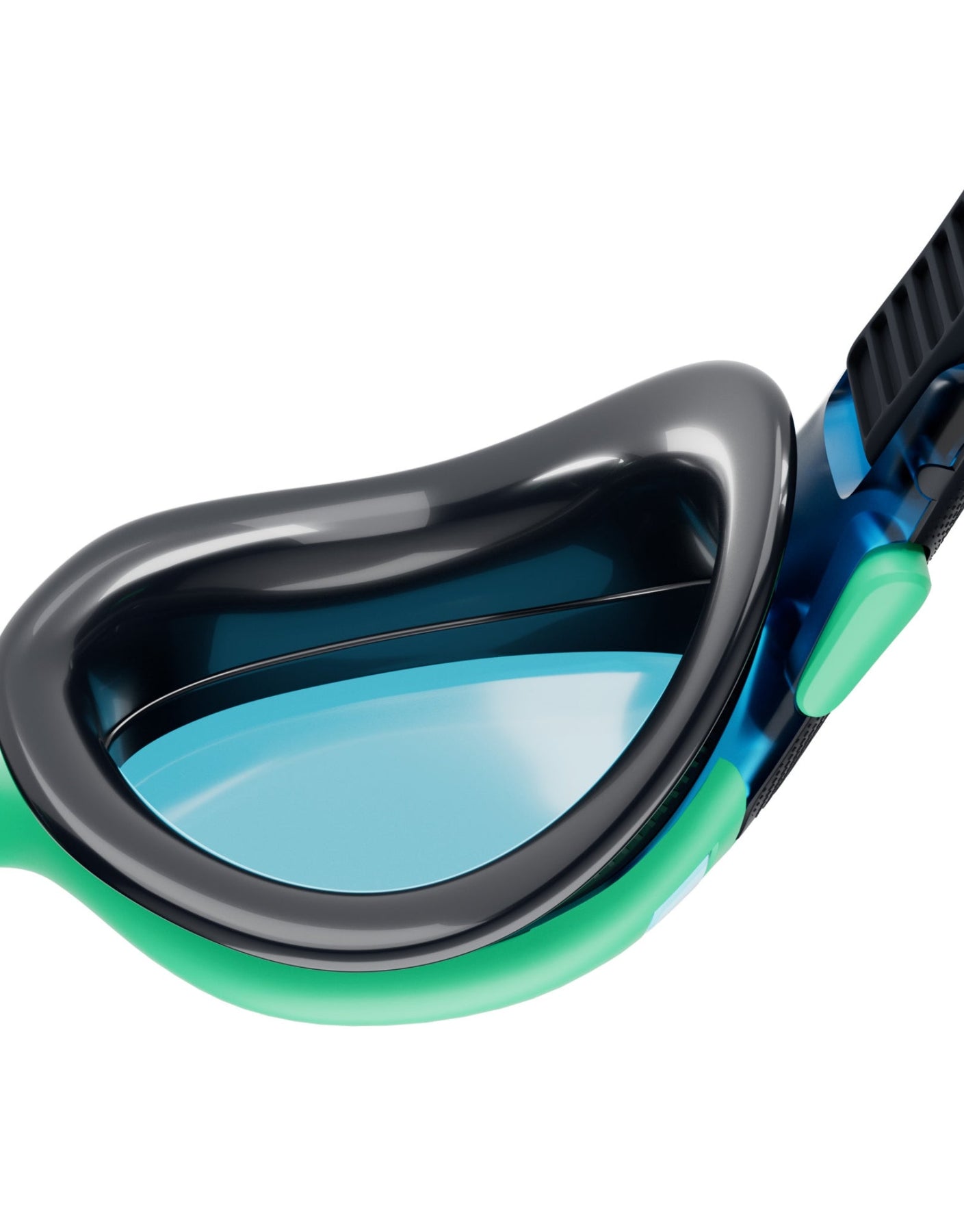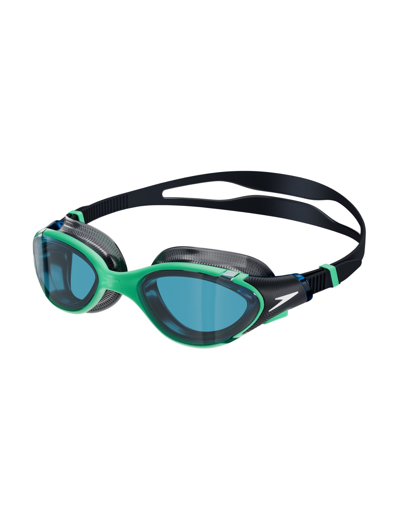 The Speedo Biofuse 2.0 Swim Goggle features ground-breaking biosynthetic materials, a patented push button mechanism and super-soft seals with a new groove design, with increased peripheral vision and superior comfort.