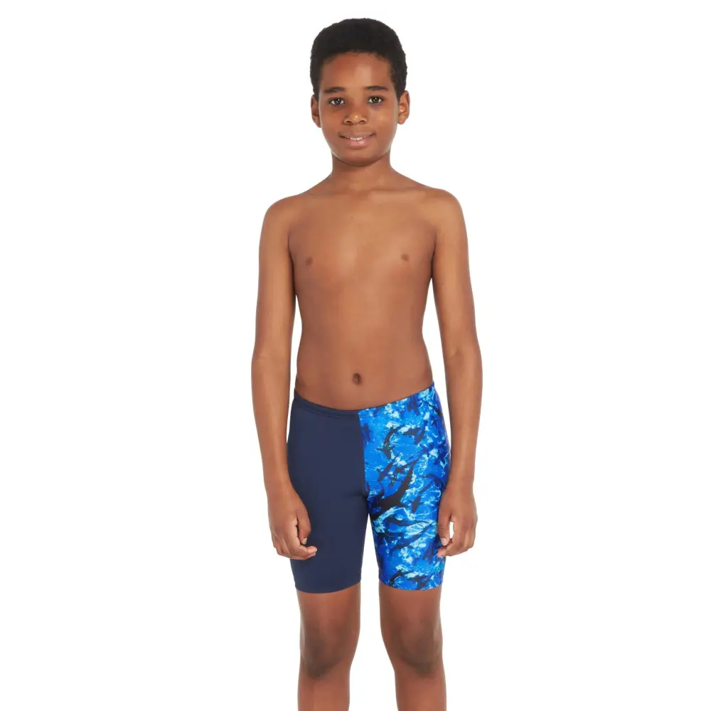 The Boys Abyss Mid Swim Jammer from Zoggs is the ideal swimwear for frequent swimming, designed with deep ocean prints. The jammers provide comfort and support while swimming with a triangle front lining. Made from durable Ecolast fabric, the jammers offer high chlorine resistance and have shape retention.