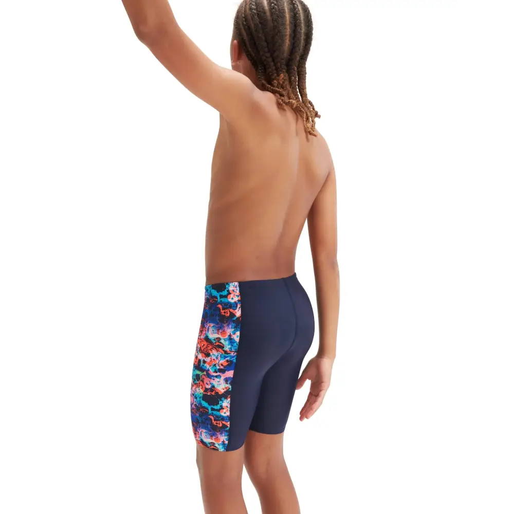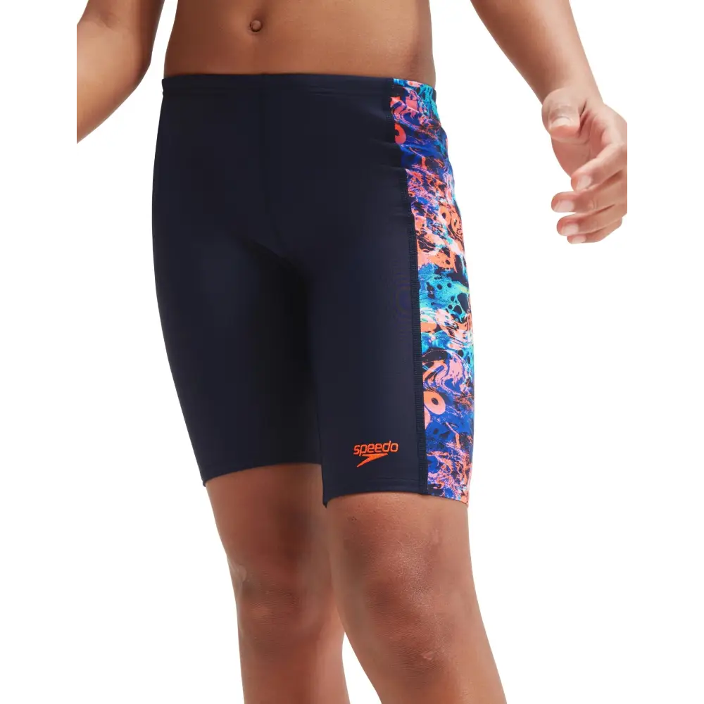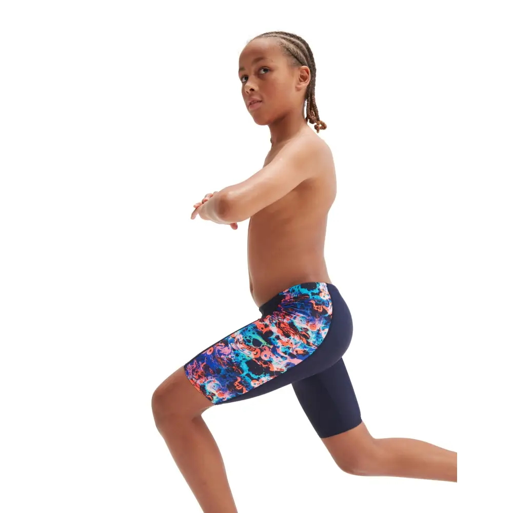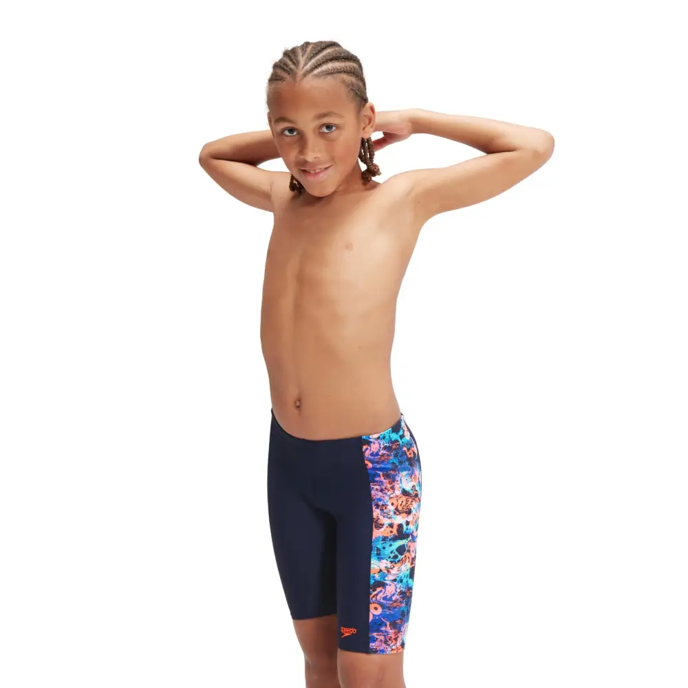 The Boys Allover Panel Swim Jammer from Speedo is a sleek, stylish, and comfortable junior jammer to fill you with confidence. the internal drawcord enables you to adjust the fit while the shape-retention fabric stretches and makes you enjoy swimming without feeling restricted. The swimwear is made from Eco EnduraFlex fabric and offers high chlorine resistance.