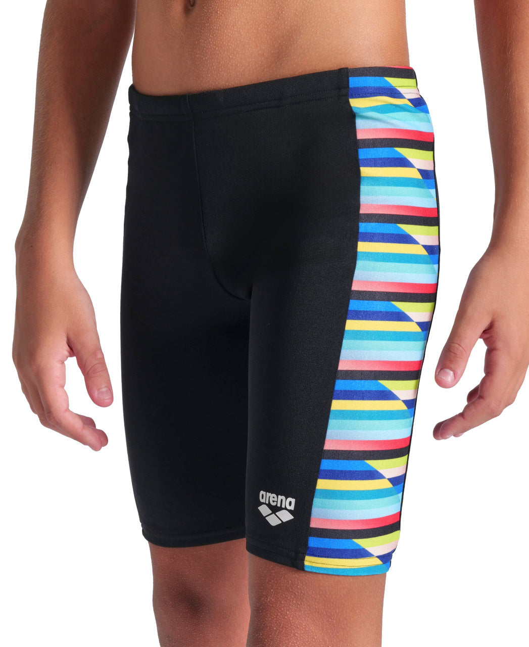 The Boys Racing Stripe Swim Jammer from Arena features a bold side print in stripe. The front triangle lining ensures comfort and the inner drawstring provides a secure fit. Made from MaxLife Eco fabric, the jammers are chlorine-resistant and quick-drying, making them perfect for regular swimming.
