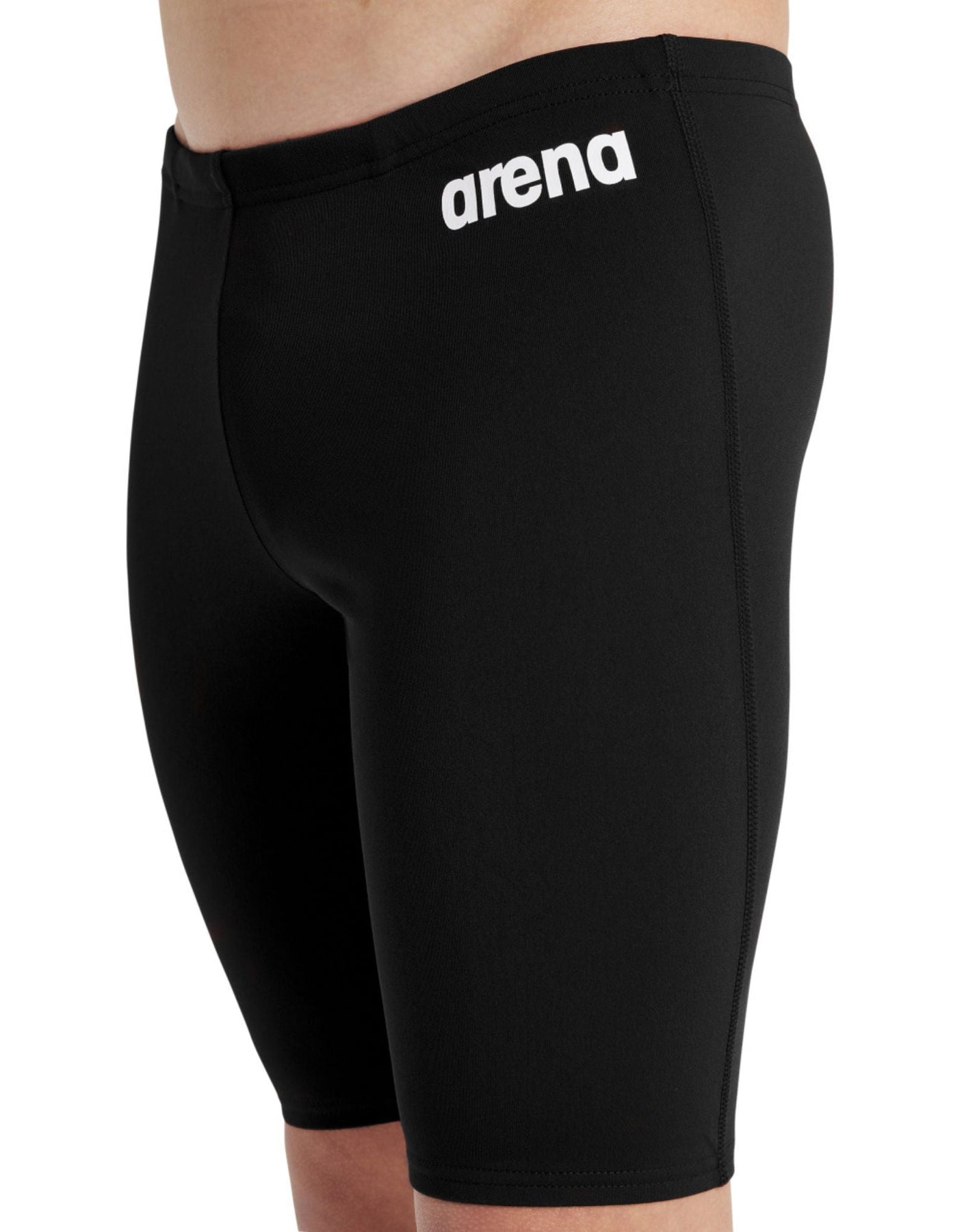 The Boys Team Solid Swim Jammer from Arena in black, is durable swimwear that is perfect for regular and intensive young swimmers with a smooth surface to minimise friction in the water. Featuring an inner drawstring and front lining, it provides greater freedom of movement as well as comfortable coverage. Made from long-lasting MaxLife Eco fabric, this jammer offers high chlorine resistance and UV protection.