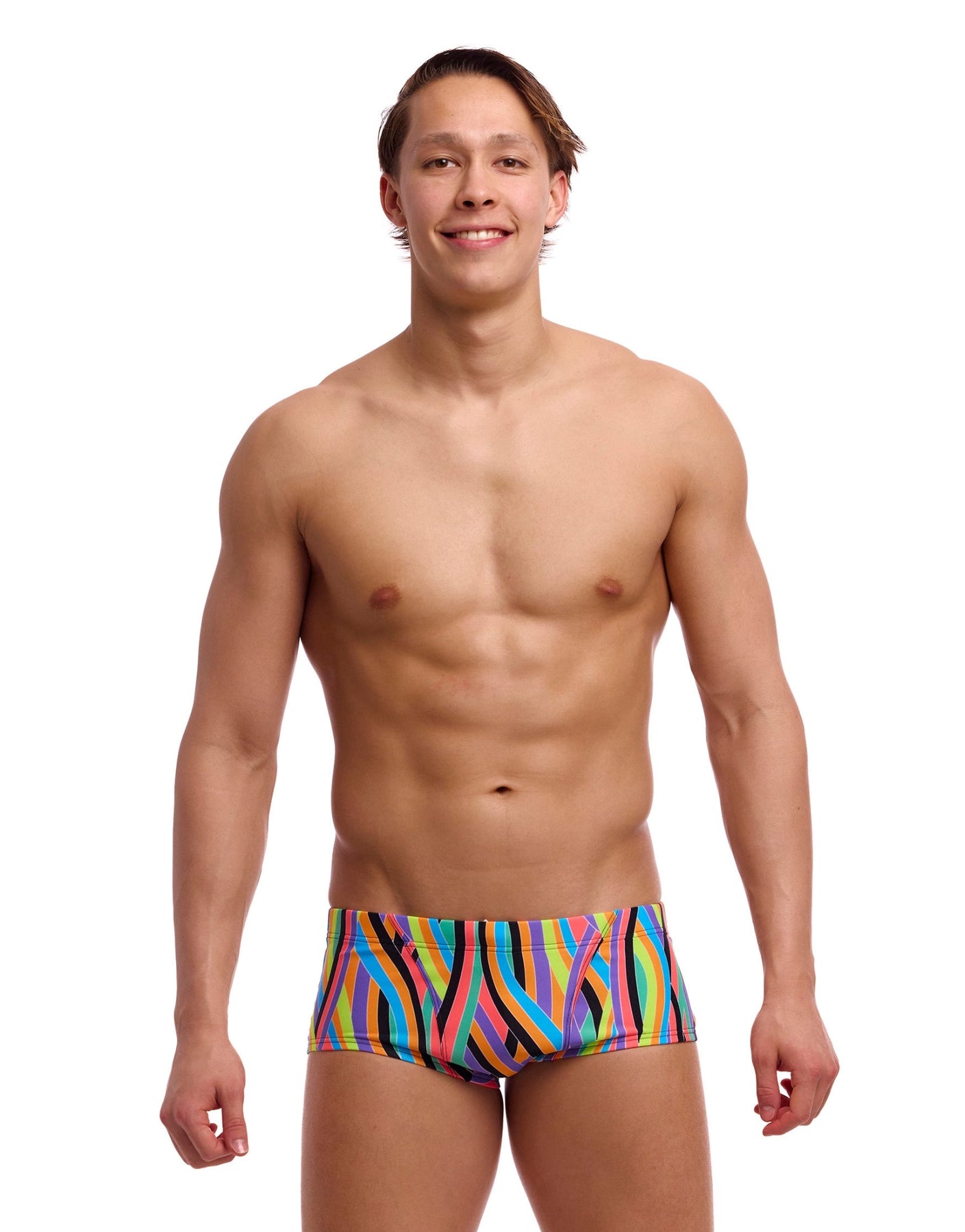The Curl Curl Swim Trunks from Funky Trunks will make you stand out from the multi-coloured wavy prints. They have 16.5cm sides and a stitched front pouch with double lining for added comfort and support. The turnks are designed with a drawcord for added security and wide elastic leg opening and waistband for extra comfort. Made from ECO C-Infinity fabric, they are chlorine resistant and extra durable.