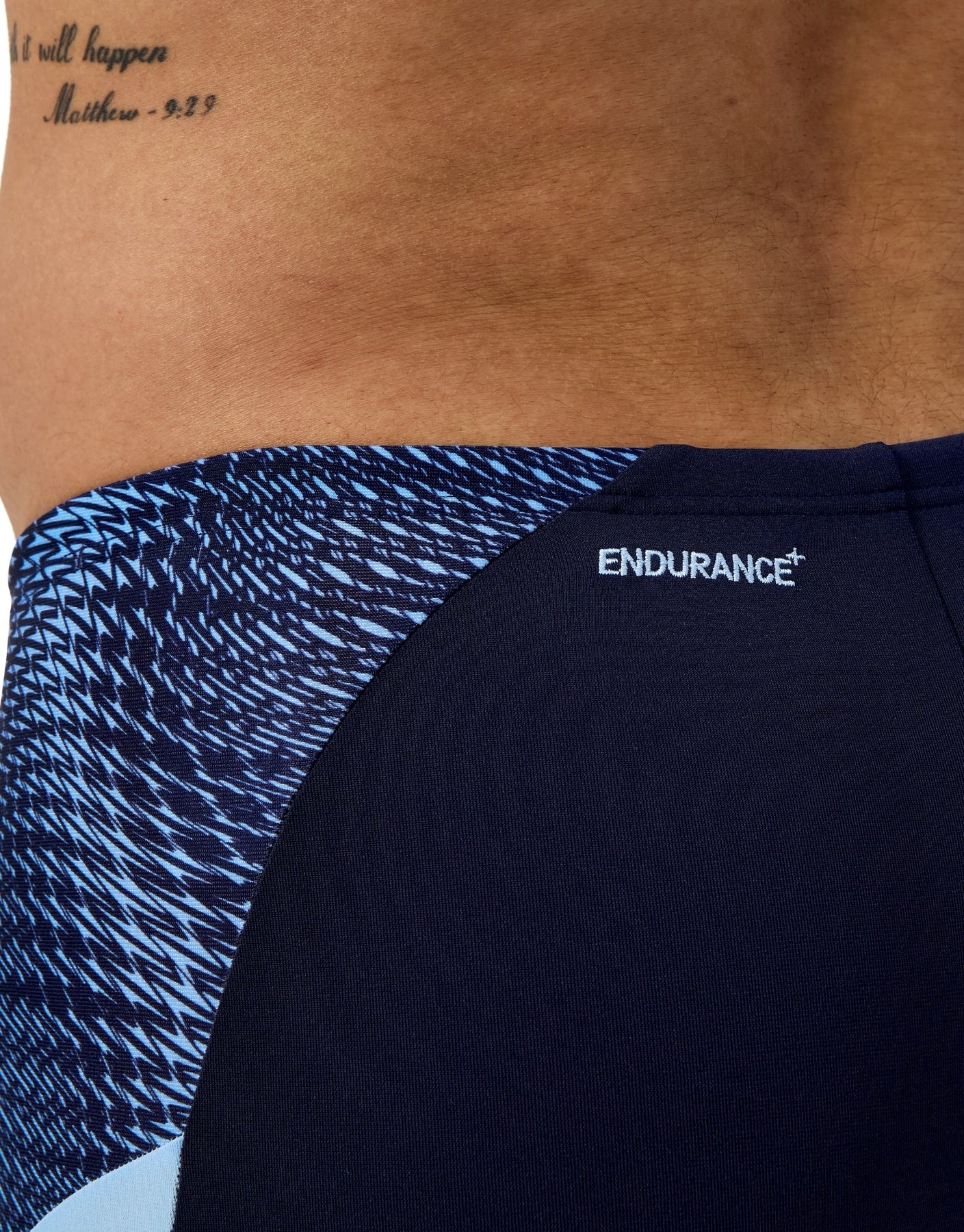 The Endurance+ Max Splice Swim Jammer from Speedo features splices of contrasting colour that give it a sporty edge. The Integral support and an adjustable internal drawcord keep it secure and comfortable as you fly through your training. Made from durable Endurance+ Max fabric, it resists chlorine, sunscreen oil, and pilling.