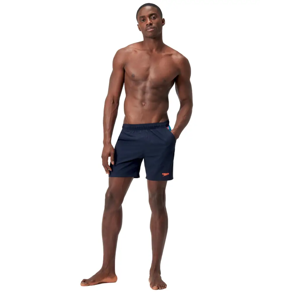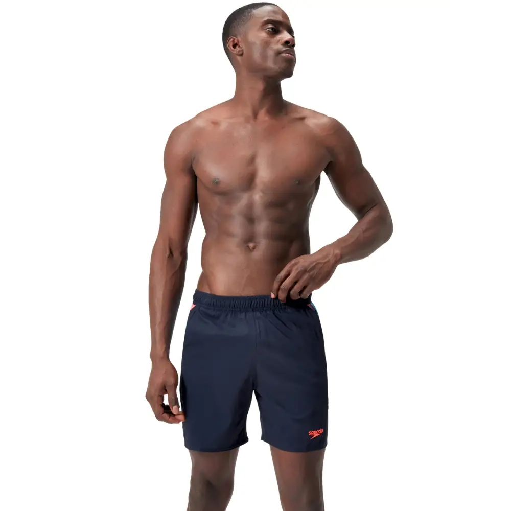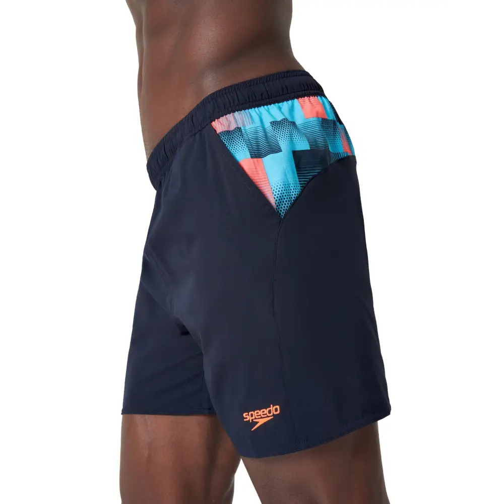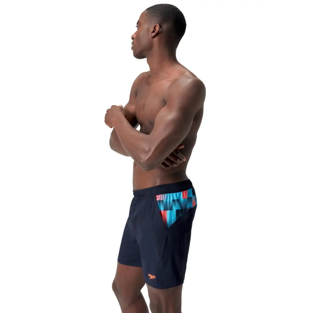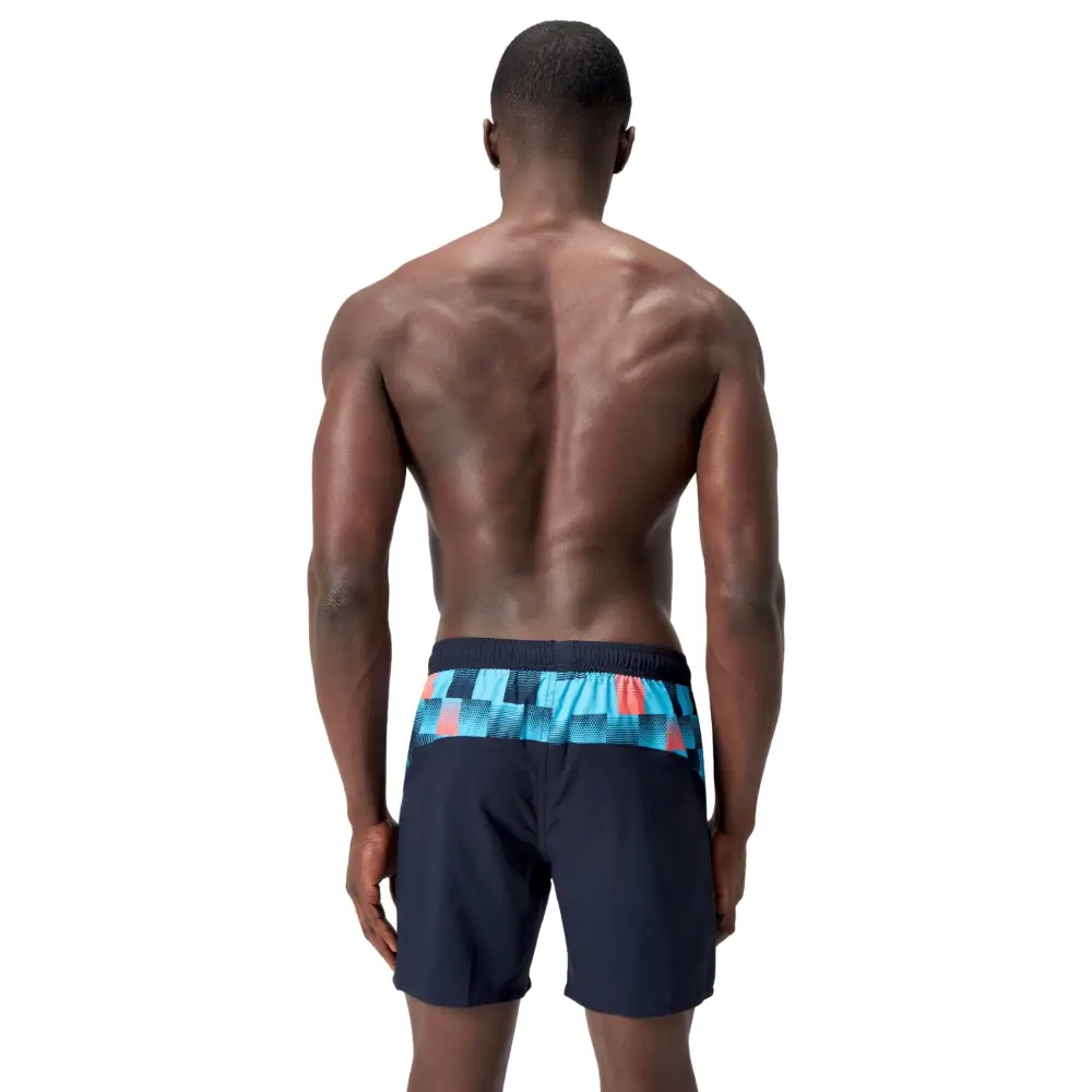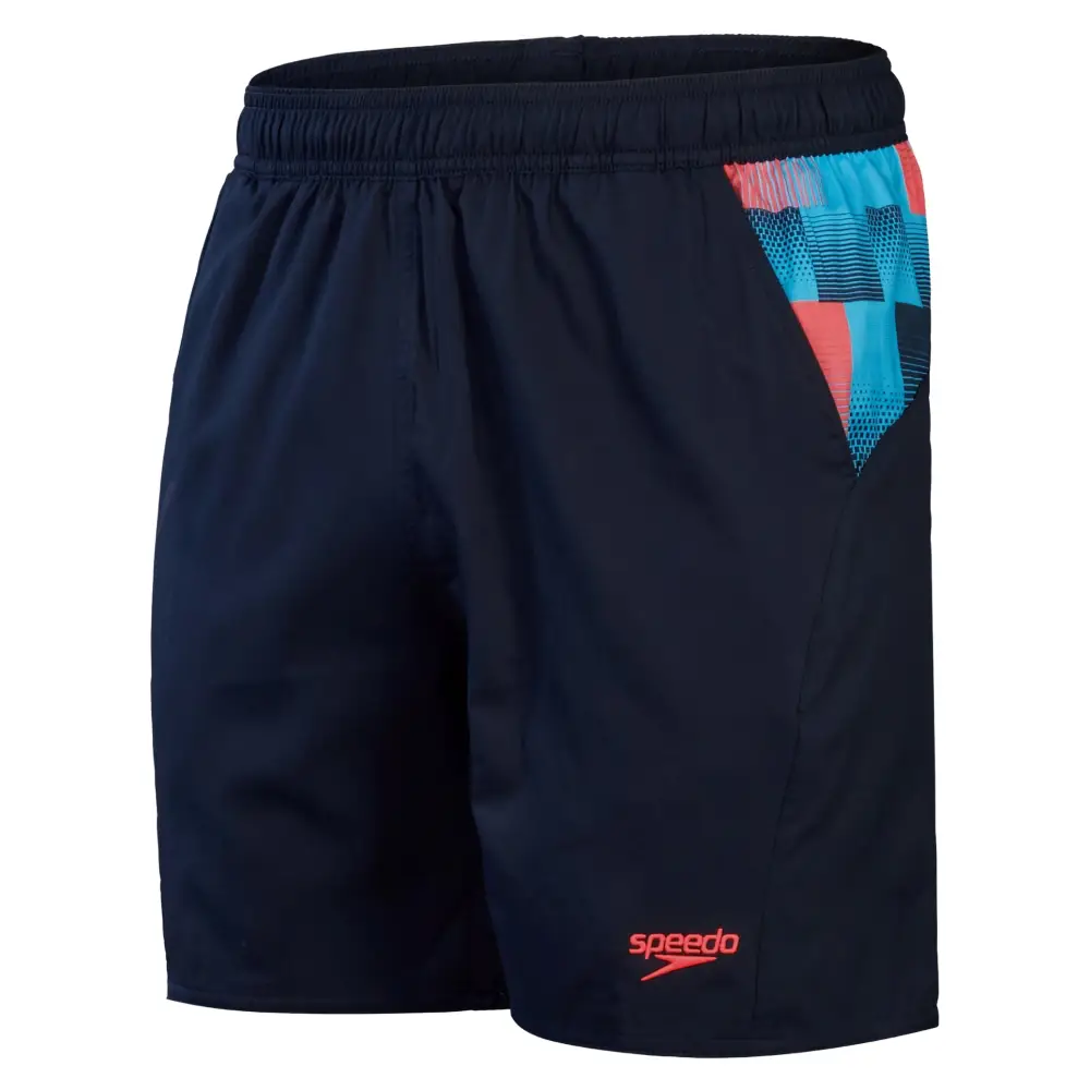 Regular price £35.00 Sale price £29.99 Save 14%The Men's Sport 2 Panel 16" Watershorts from Speedo are perfect for the pool, beach, or leisure wear. The watershorts have a vibrant pattern starting at the pocket area to the back top panel of the shorts. The graphic pattern in teal blue and reds sits on a background of navy. There is an inner mesh brief for added security and a drawstring for a perfect fit.