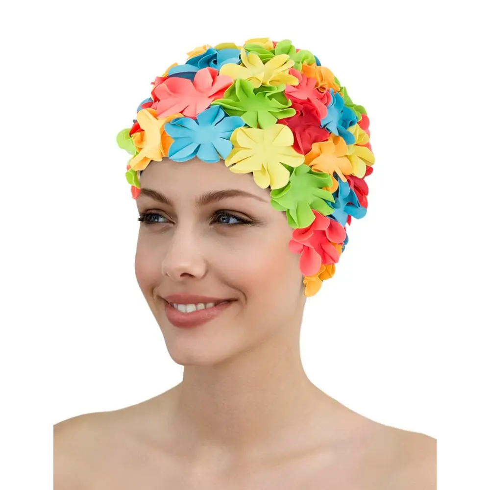 The Flower Rubber Swim Cap from Fashy is designed with eye-catching flowers which add some retro glamour to the pool. Made of 100% thick rubber, the swimming cap gives you a comfortable fit and warmth when swimming outside.