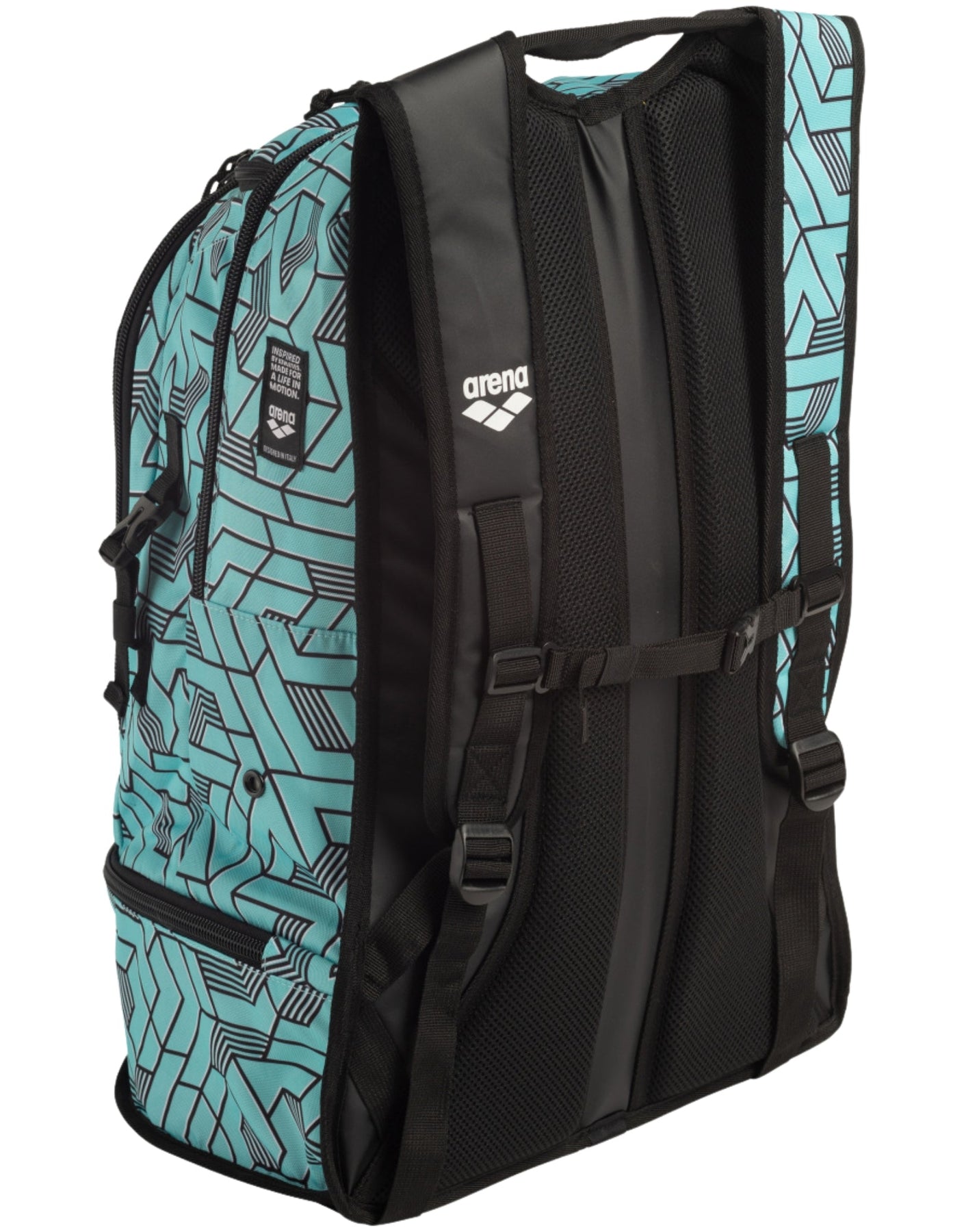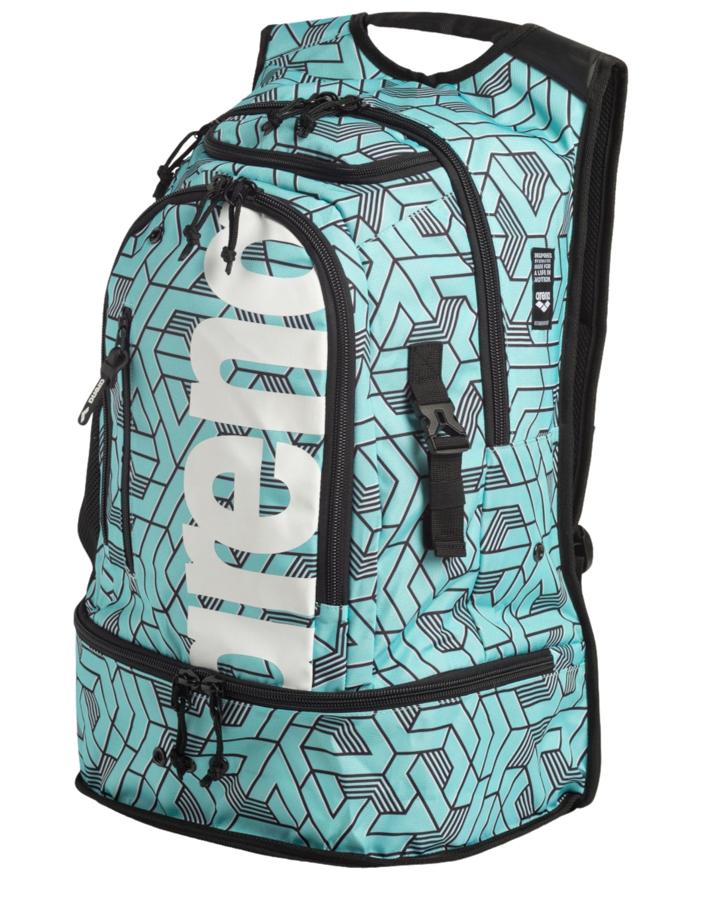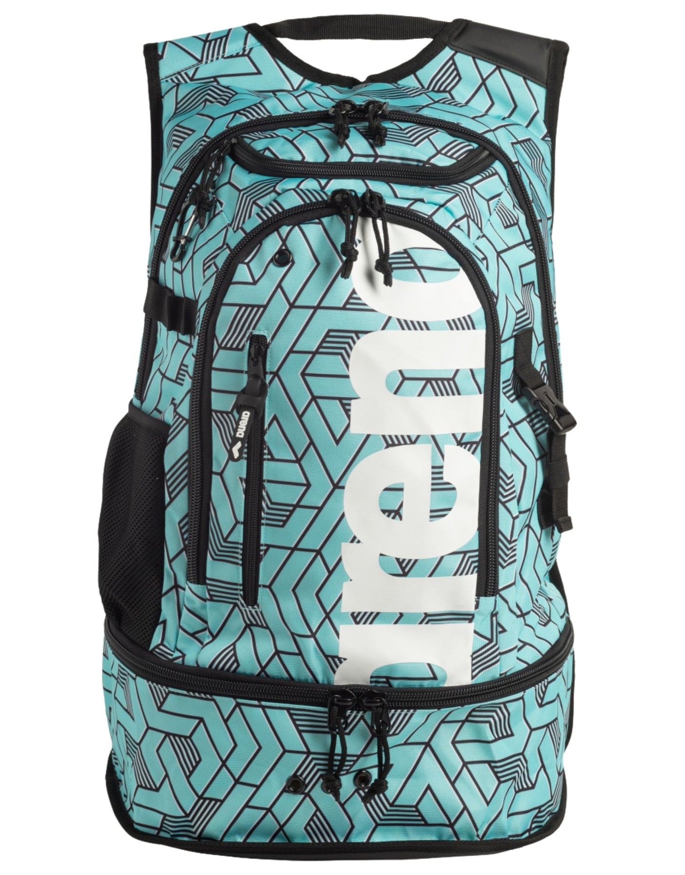 The Fastpack Escape 3.0 Swim Bag from Arena is an essential piece of kit to keep all your swimming gear organised. There is a smart geometric pattern in mint green and black to the front of the backpack, with details and back in black. Featuring a smart space management system, it allows you to quickly organise and easily access your swimwear and equipment. It comes with multiple compartments so that you can order your swim gear, such as kickboards, pull buoys, and wet and dry clothes. A large bag with superior support.