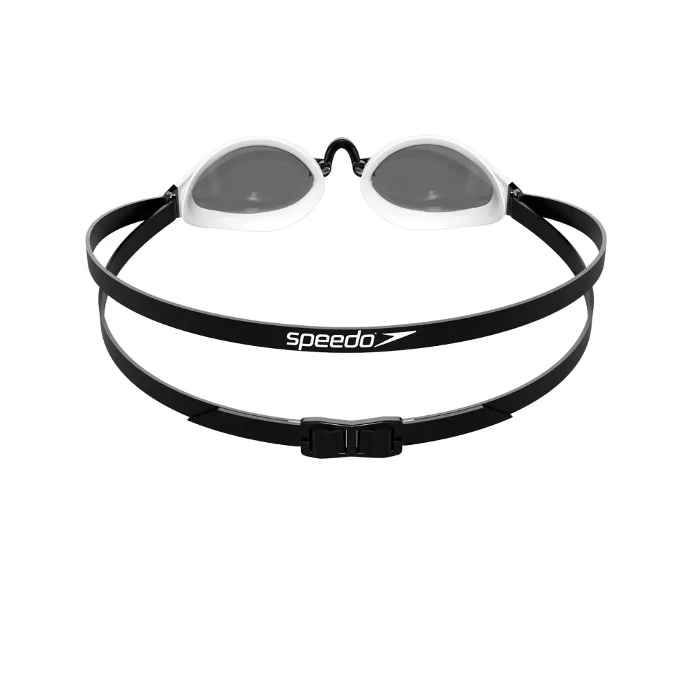 These Fastskin Speedosocket 2 Tinted goggles from Speedo are perfect for racing with light smoke tinted lenses with a black strap and a dynamic white frame that reduces brightness and glare whilst swimming for increased vision. Speedsocket 2 goggles feature a new hydroscopic lens shape providing excellent clarity with increased peripheral vision. There is a choice of nose bridges for the perfect fit and a traditional double silicone head strap, for a secure fit, all fully approved by FINA.