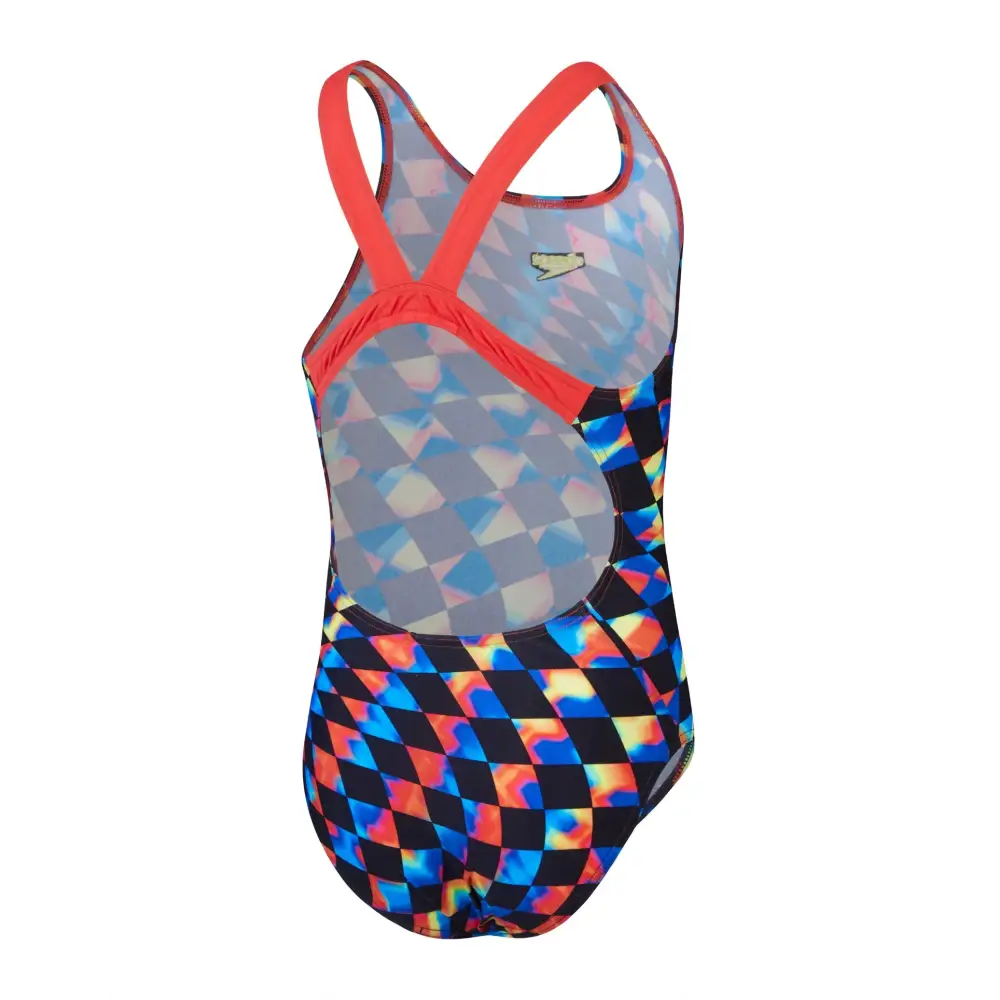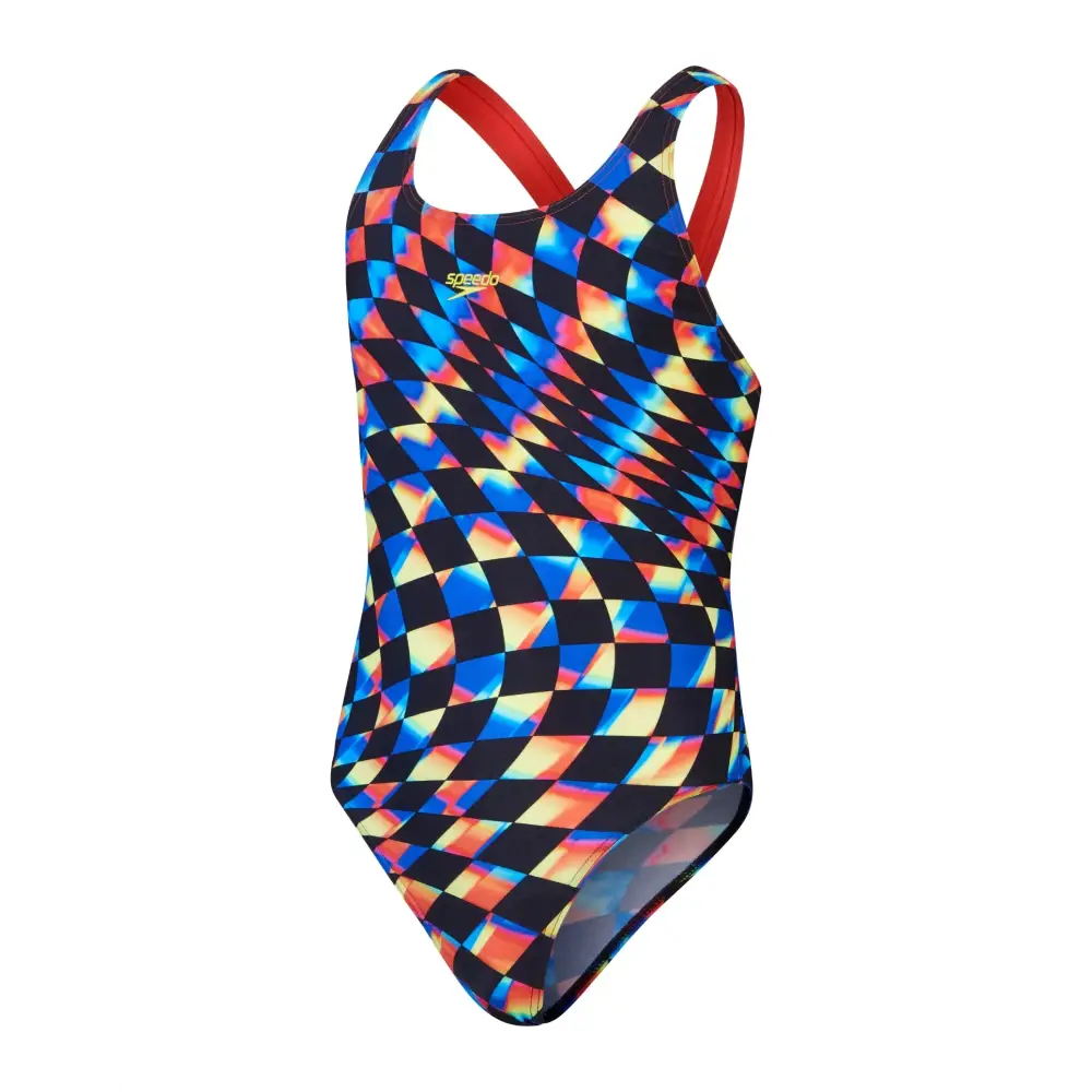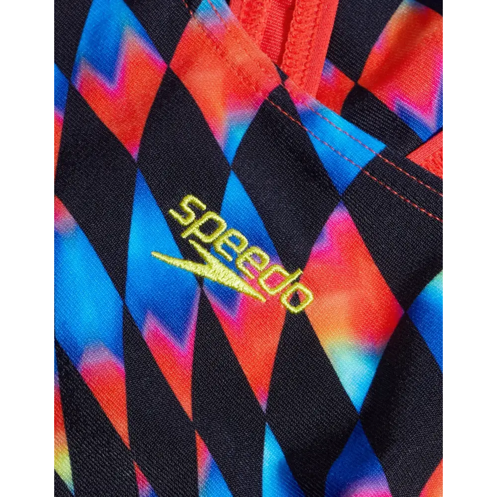 The Girls Digital Allover Leaderback Swimsuit from Speedo is designed with a colourful pattern that makes your children stand out in the pool. Featuring a medium leg height, the swimsuit ensures moderate support and comfort while the leaderback design provides freedom of movement. Made from Endurance+ fabric, it offers 100% chlorine resistance and great durability.