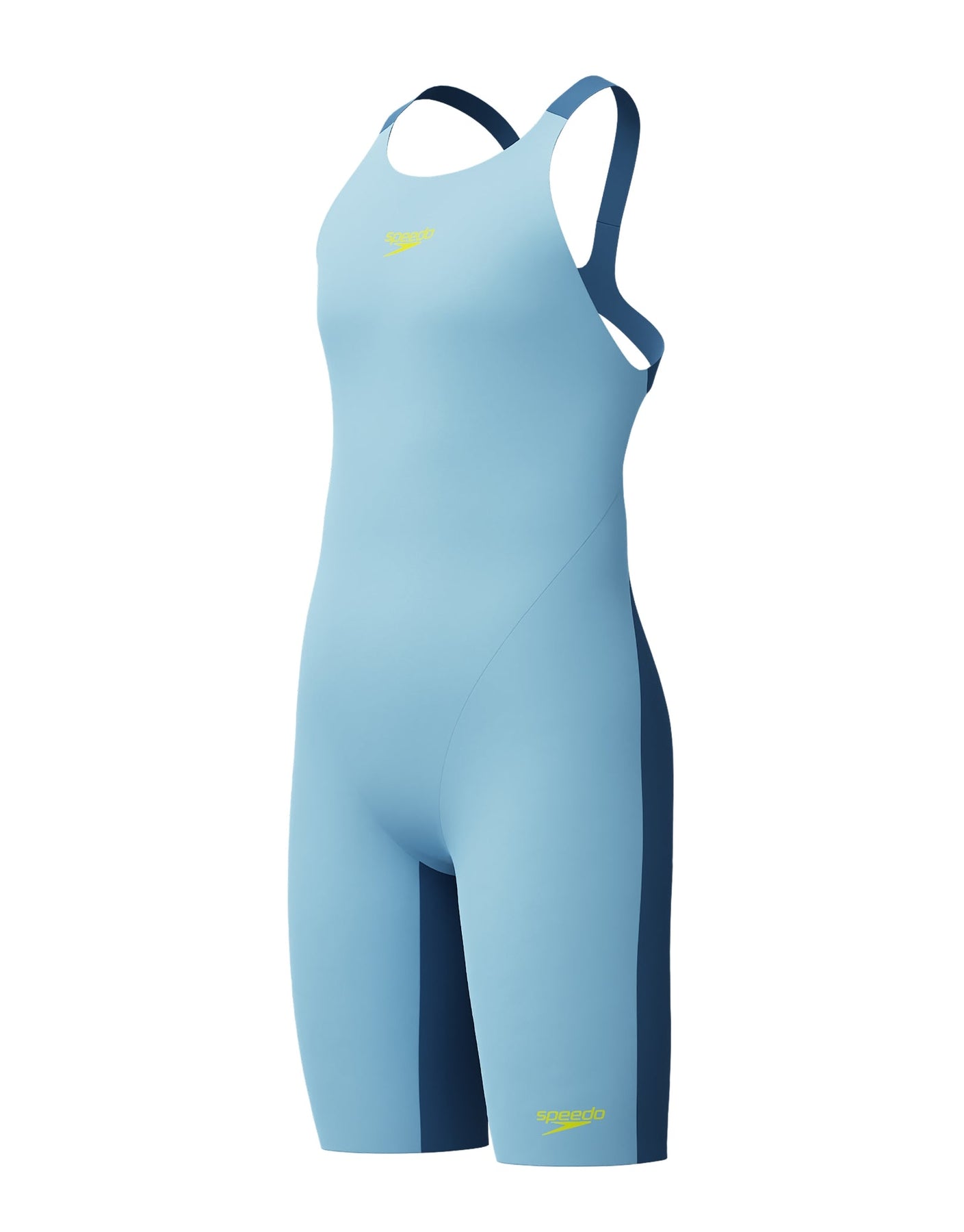 The Girls Fastskin Endurance+ Max Open Back Kneeskin from Speedo features a bold colour-block design and emulates the style line of the popular LZR Valor suit for young swimmers to look and feel like their heroes as they step up to the blocks. The open bck design and 4-way stretch fabric ensure comfort and freedom of movement, allowing junior athletes to focus on their race. The suit is made from 100% chlorine-resistant and quick-drying fabric.