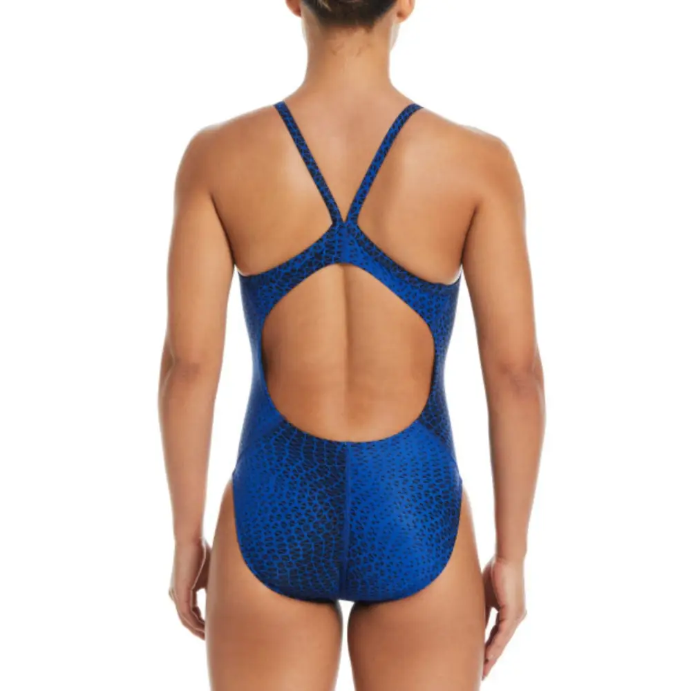 The Hydrastrong Delta Racerback Swimsuit from Nike features medium support and moderate back support with a racerback design and narrow straps. The high-leg height allows a wide range of motion while the full bottom coverage and lining ensures better fit and security. The chlorine-resistant Hydrastrong fabric is durable and suitable for regular training and swimming sessions.