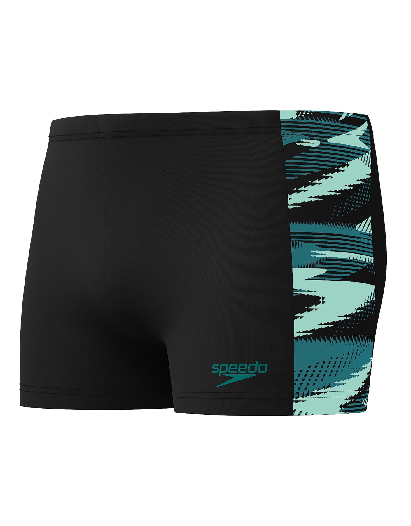 The Hyperboom Panel Aquashort by Speedo features an attractive contrast panel pattern down the sides in green. It is designed with a drawstring waist, which provides security and an enhanced fit. The aquashort is made from Endurance+ fabric, is chlorine-resistant, quick drying, and long-lasting, perfect for regular swimming or training sessions.