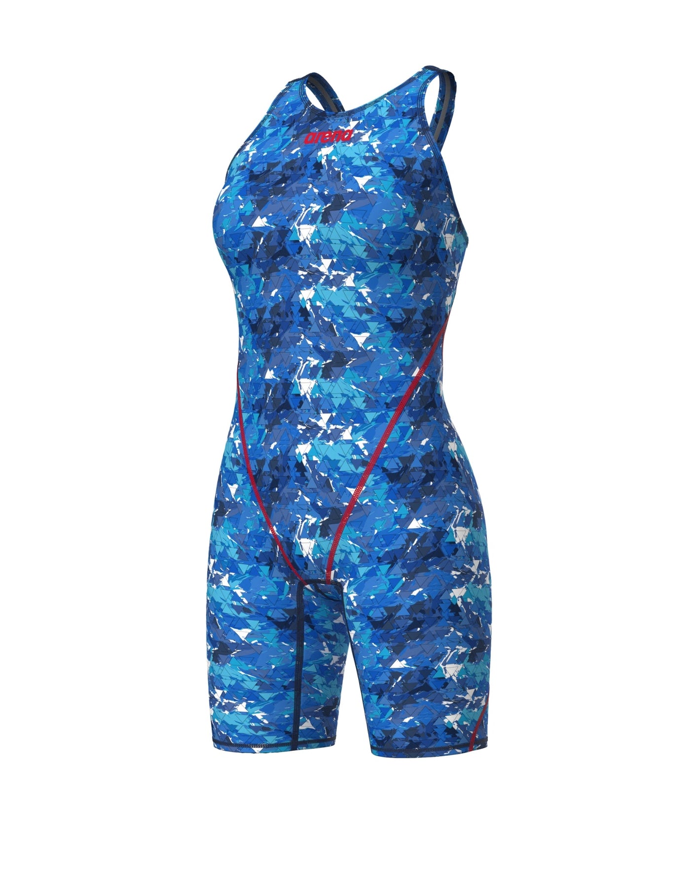 The Powerskin ST NEXT Open Back from Arena features the limited edition print inspired by the fluid motion of water and the calm focus of a competitor. This is the first World Aquatics-approved racing suit made from sustainable recycled fabric in its design. The flatlock seams and reinforced shoulder straps offer comfort and support, while the 20% lighter fabric enables faster swimming and minimal drag. Designed for the optimal balance of compression and ease of use, it is the perfect entry-level tech suit or advanced training swimsuit.