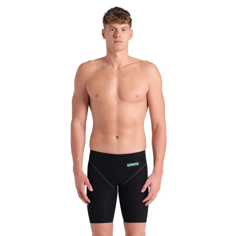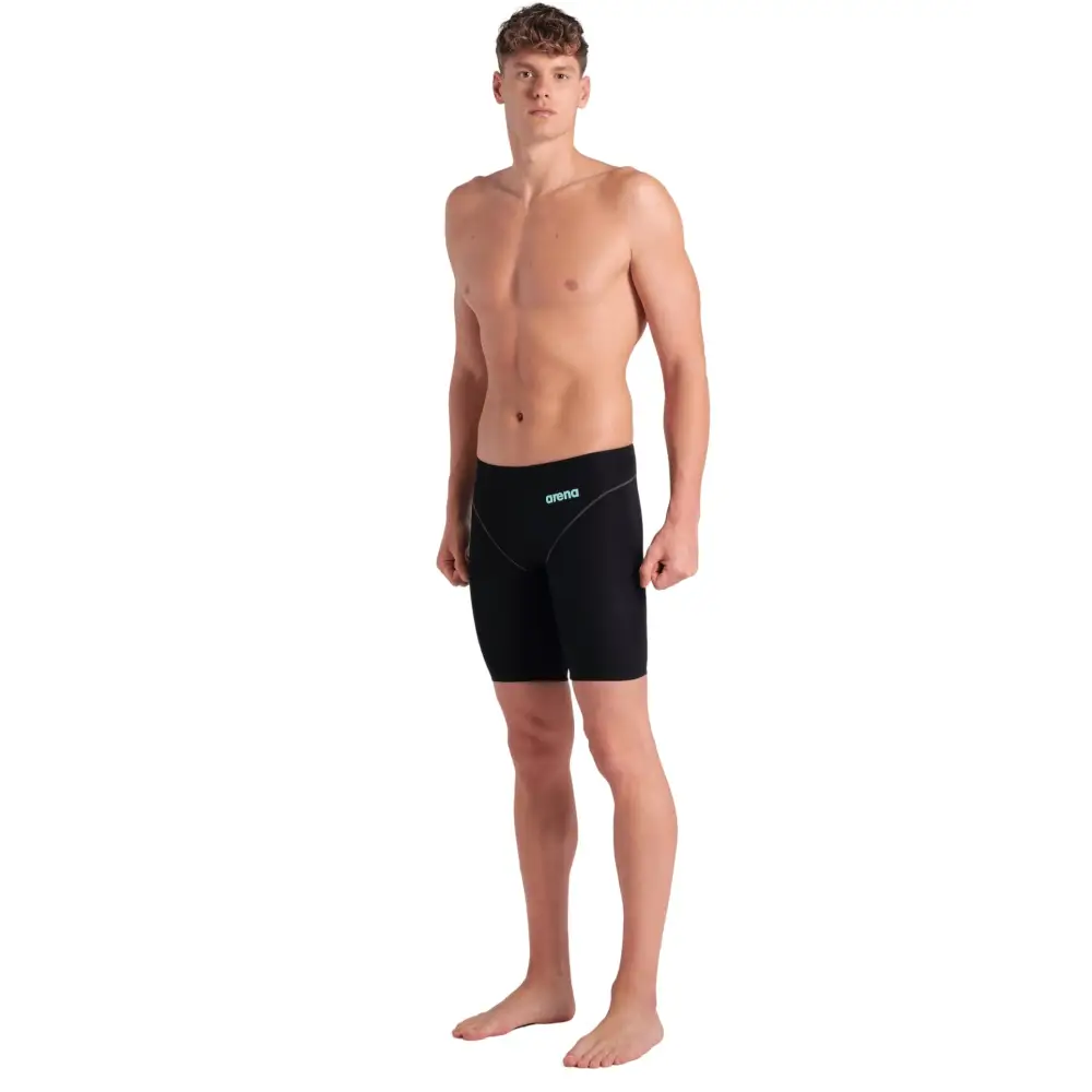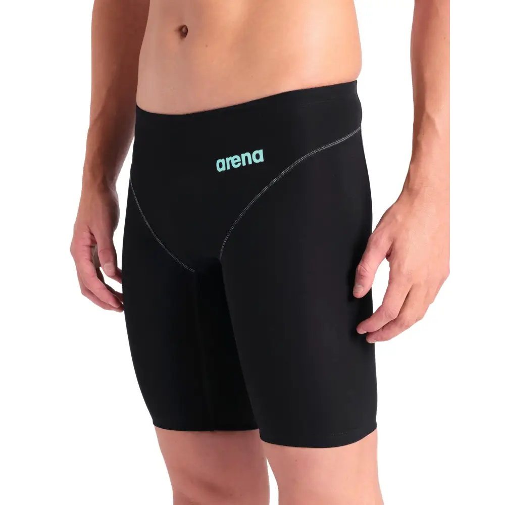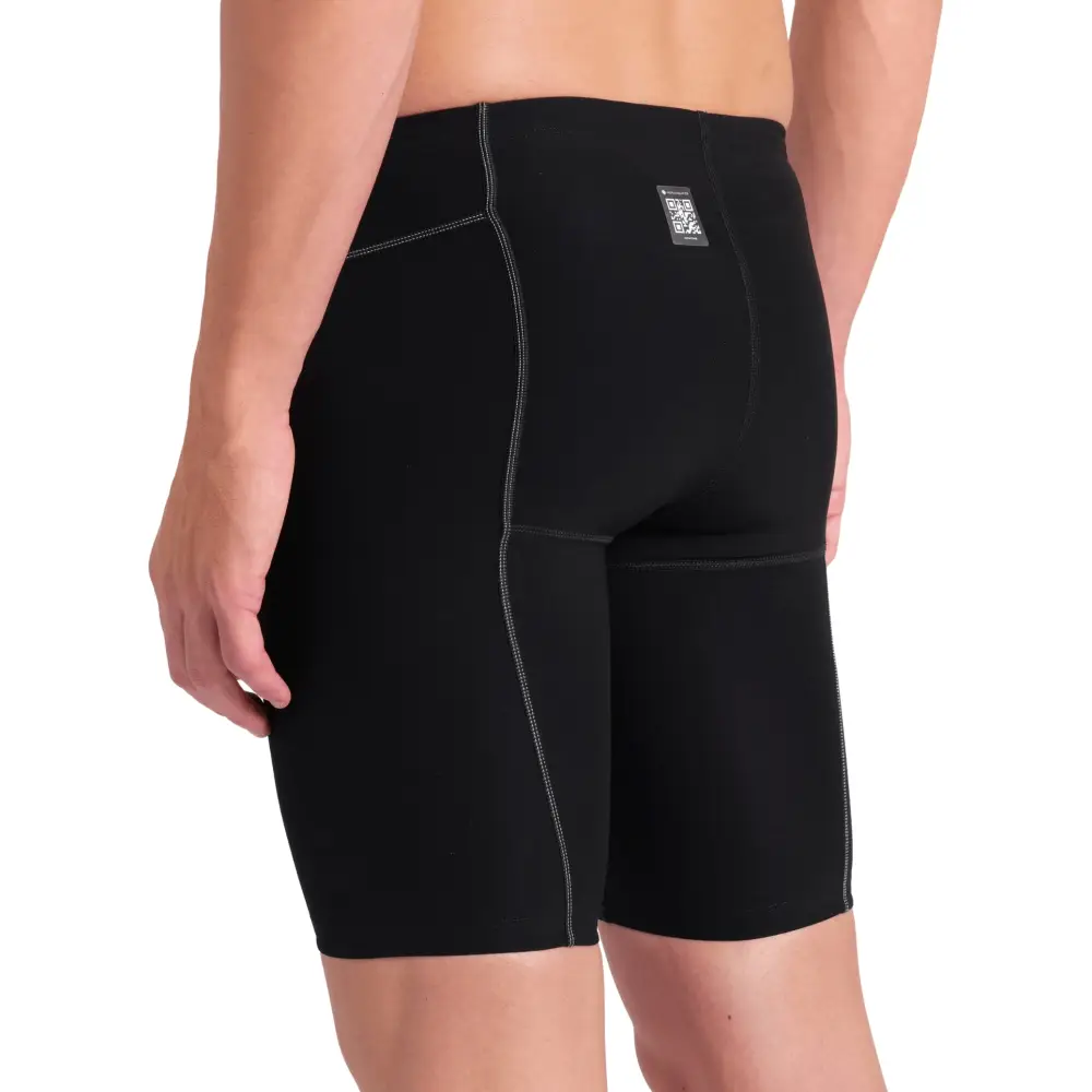 Regular price £126.00 Sale price £115.00 Save 9%The Powerskin Impulso Men's Jammer from Arena with Fina approval, have improved hydrodynamics to ensure that your training sessions have reduced drag with minimal water absorption. These black jammers featuring teal stitching are made with a hydrophobic, woven fabric. The woven structure ensures balanced muscle support and compression, while the flatlock seams offer flexibility and a streamlined surface. They are World Aquatics approved.
