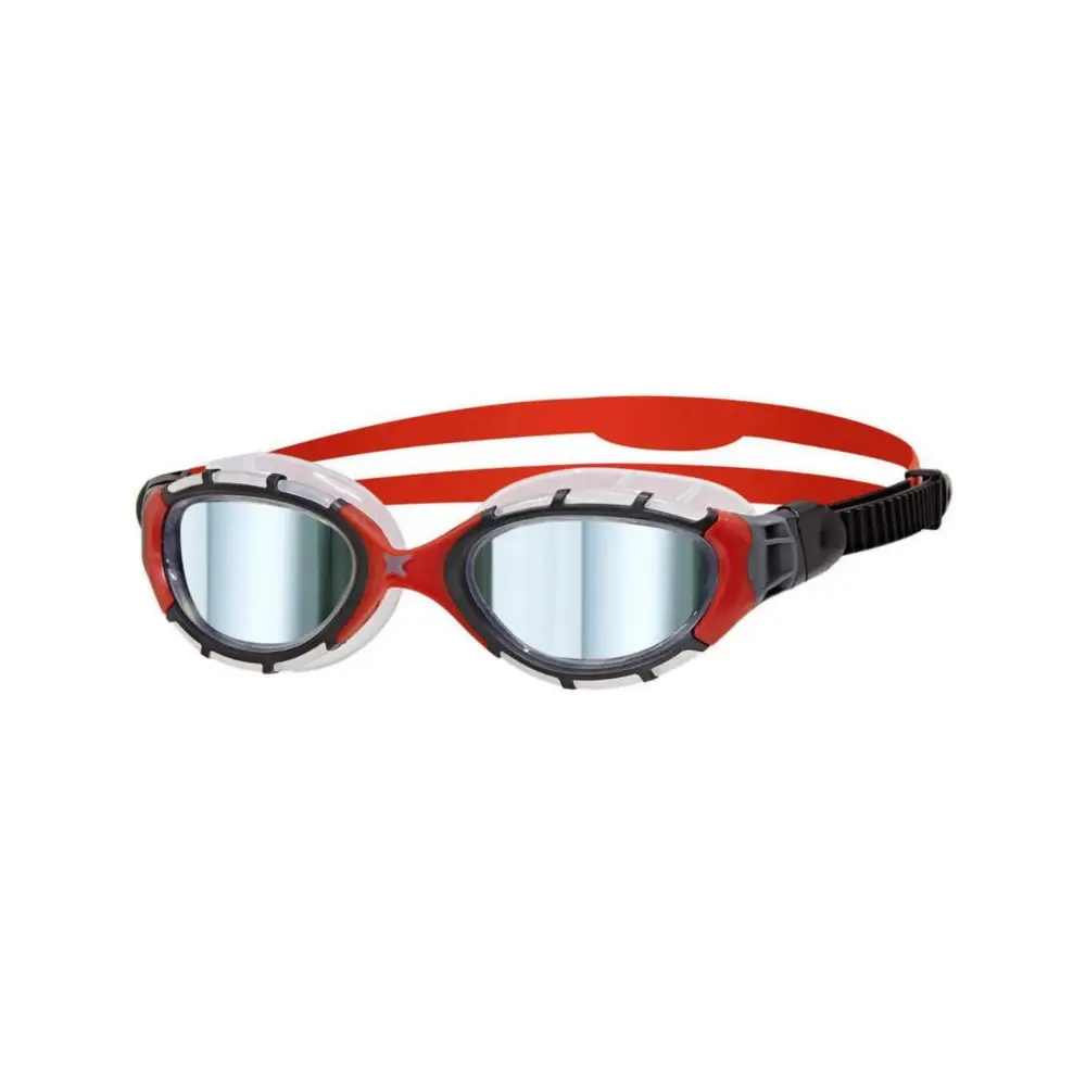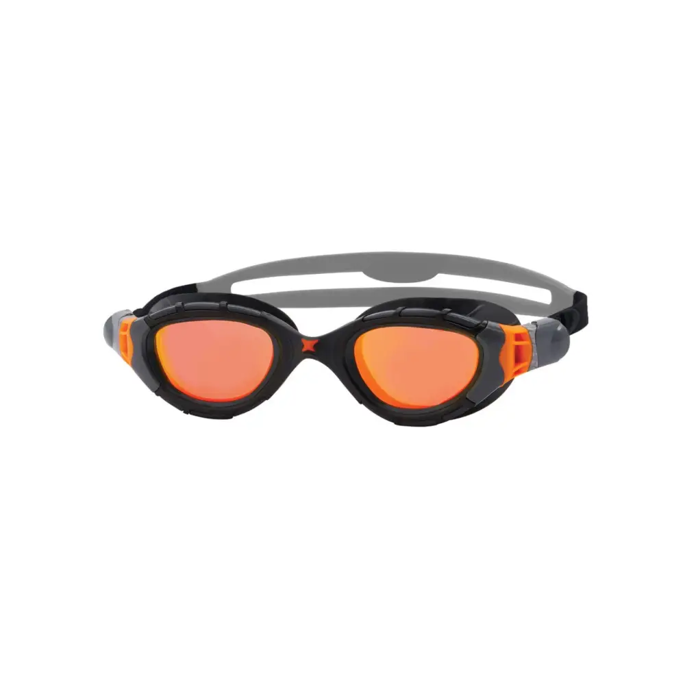 The Predator Flex range of swimming goggles offers unrivalled comfort and fit, thanks to the use of 4 unique flexpoints for enhanced frame flexibility and a customised fit; with a bunch of added features like anti-fog and curved lens technology. The titanium lens makes them ideal for high levels of light, meaning these goggles are perfect for open water swimming. And a split strap for even tension across the head.