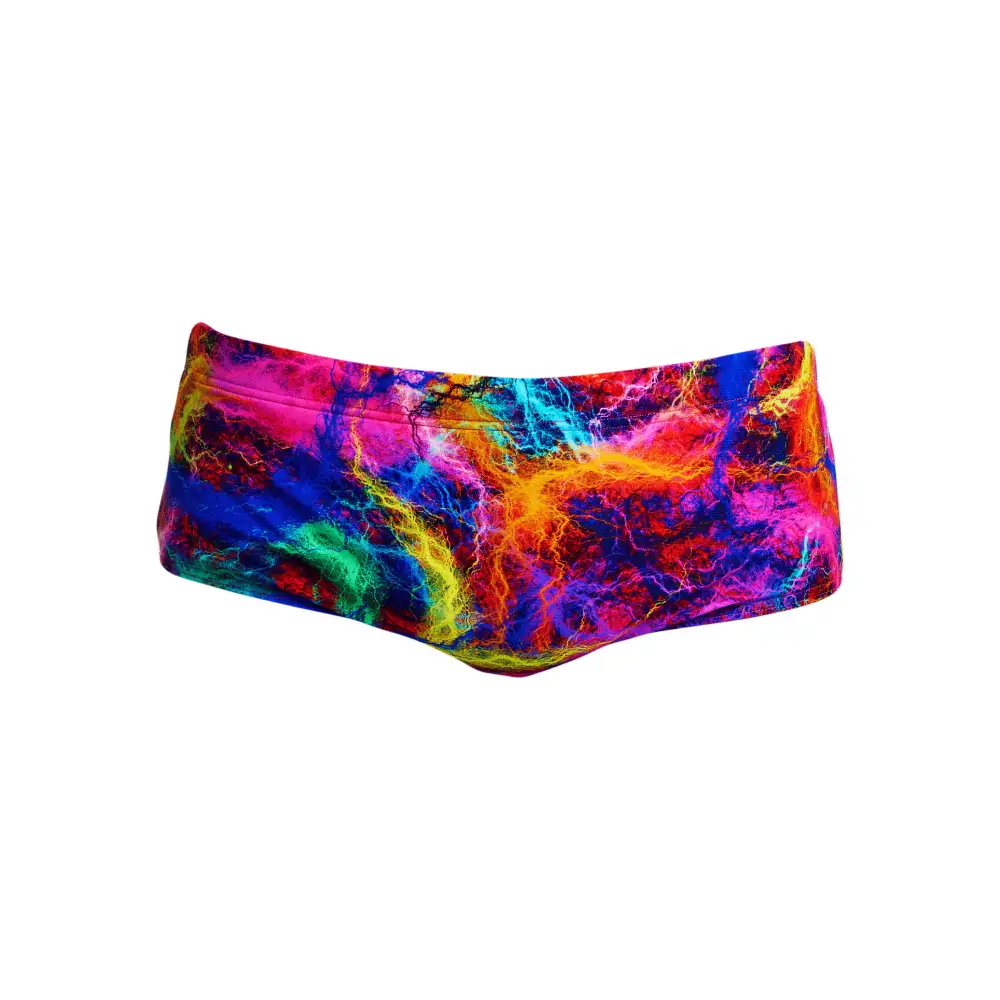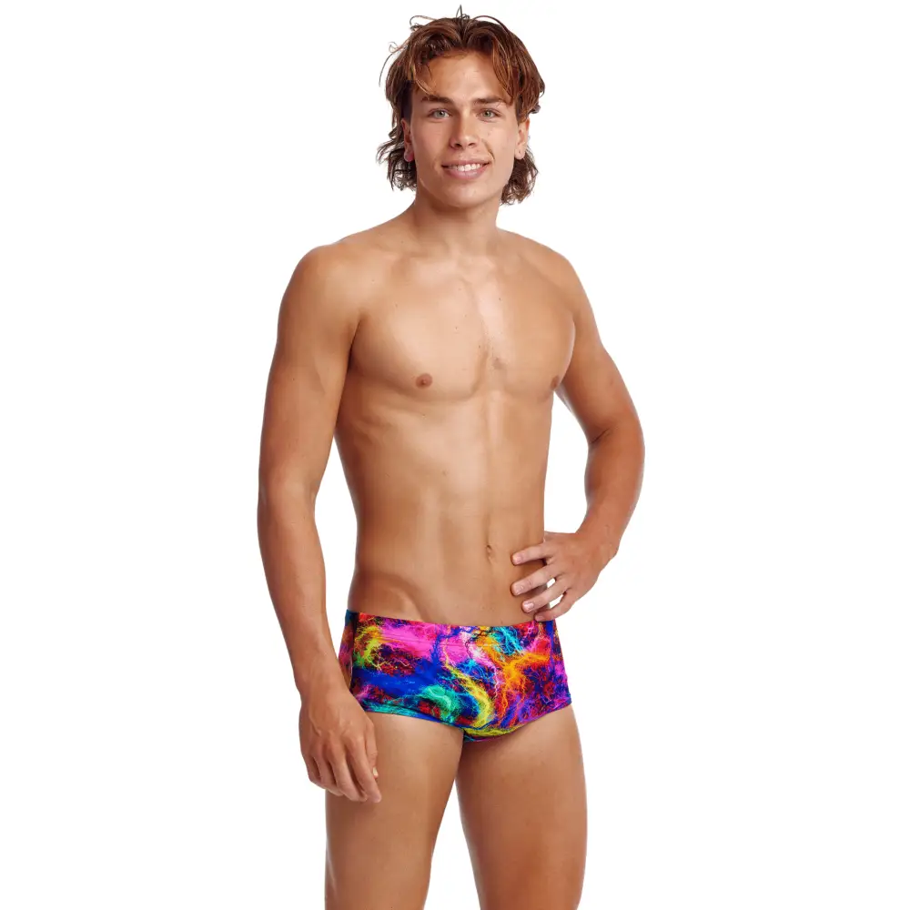 Exclusive to Funky Trunks C-INFINITY fabric technology provides excellent chlorine resistance, milled in Italy from a superior polyester fabric it has high-definition colour and exceptional durability. This print is inspired by hydrogen atoms and molecules.