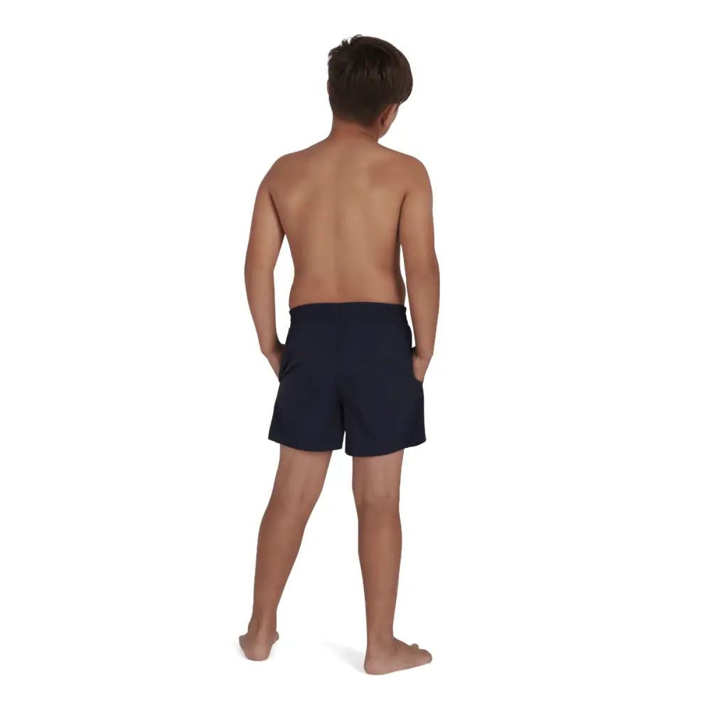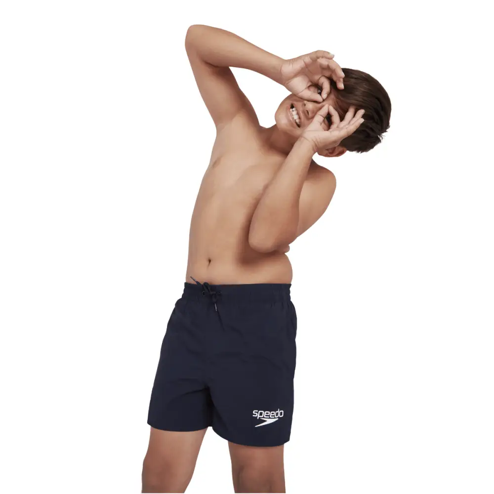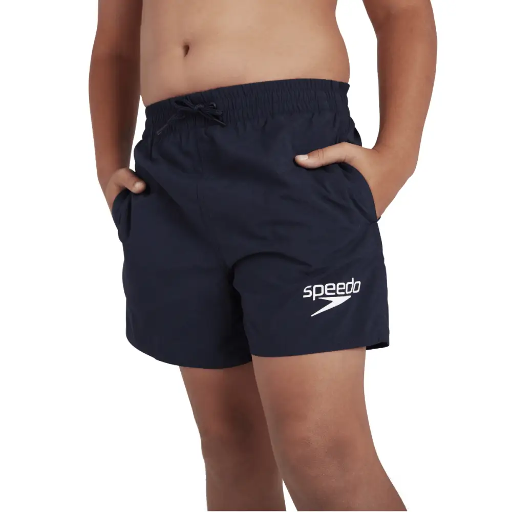 The Speedo Boys Essential 13" Watershorts in classic navy are the perfect swimwear for having fun at the swimming pool or beach. These classic shorts have a comfortable elasticated waistband with adjustable drawcord for a perfect fit. There are two useful side pockets with a mesh drainage system to ensure they stay comfortable, even when wet and an inner mesh brief for extra security. Made from 100% Recycled Nylon, this lightweight and soft fabric is quick-drying for days at the beach. Available in sizes XS to XXL (22 to 32 inch waist): XS - 22", S - 24", M - 26", L - 28", XL - 30", XXL - 32".