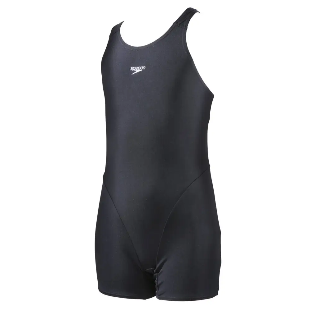 Regular price £31.00 Sale price £27.00 Save 13%The Girls Essential Endurance Plus Legsuit from Speedo in classic black, is perfect for young swimmers who prefer more coverage than a swimsuit for their swimming training sessions. The sporty Splashback straps are set away from the shoulders to allow more freedom of movement for swimming. Made from durable Endurance+ fabric, it's quick-drying and 100% chlorine resistant, plus one of the yarns in this fabric is made from 100% post-consumer waste, such as recycled plastic bottles.