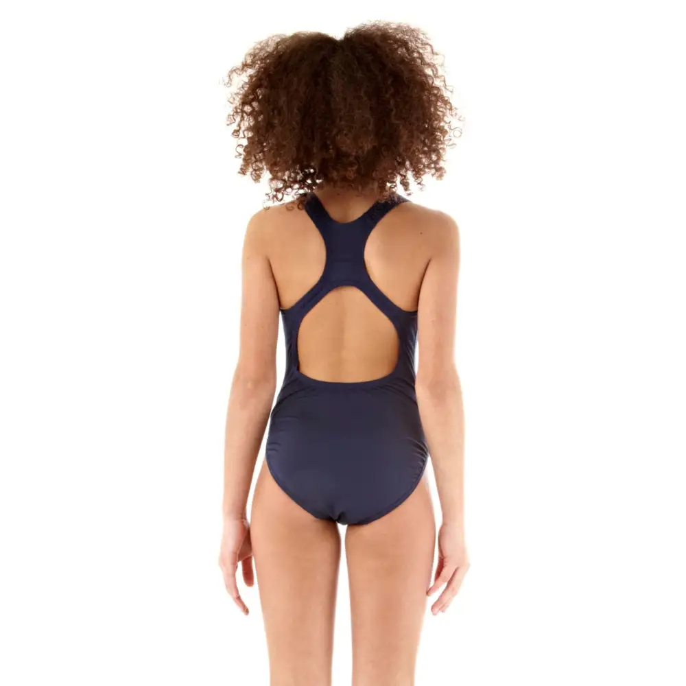 The popular Girls Medalist Swimsuit from Speedo in stylish navy blue, is the classic style swimsuit made from durable Endurance+ fabric, making it ideal for school and team kits. The long-lasting fabric is 100% chlorine resistant and quick drying to cope with regular swimming sessions. It offers great shoulder movement, flexibility and comfort with a medium leg height and wide shoulder straps.