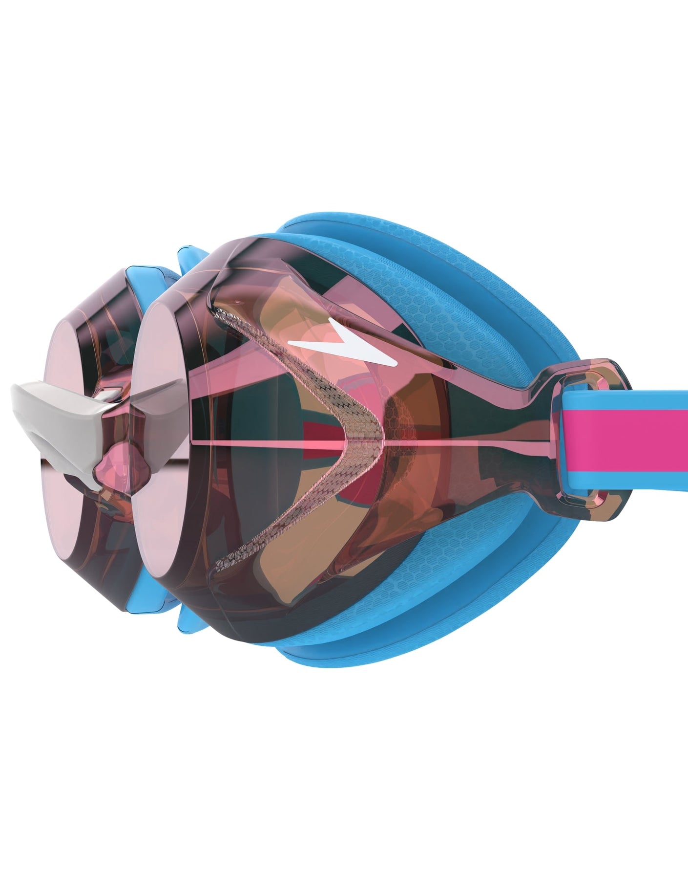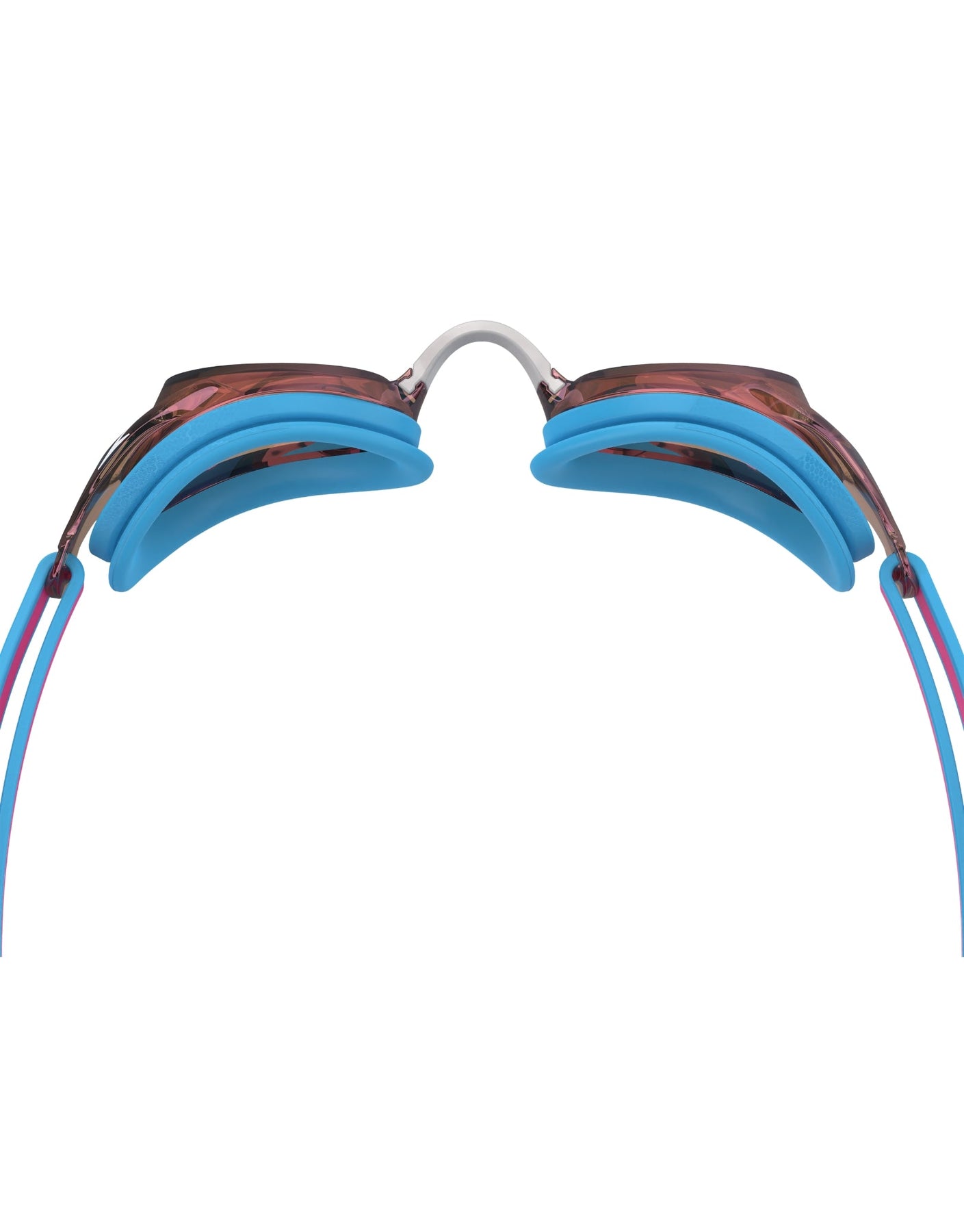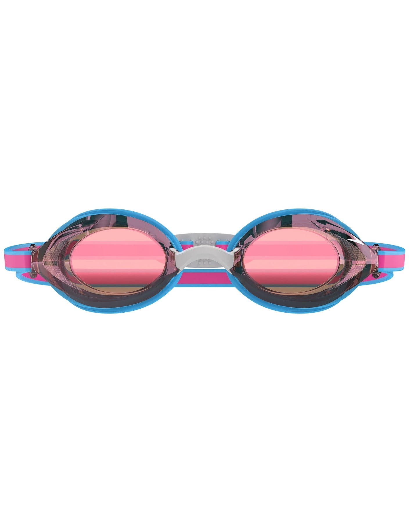 The Vanquisher 3.0 Mirrored Junior Goggle from Speedo, offers a 12% gain in vision and brightness, perfect for swimming training or swim competitions. Stronger, flatter and wider straps hold their position so you can focus on holding yours. With the same snug, race-day fit and comfortable gasket, it now includes slide-and-lock nose bridges for easy adjustment. Designed with mirrored lenses to reduce brightness and glare. Available in stunning Cobalt Blue and sleek Picton Blue/Vermillion versions.