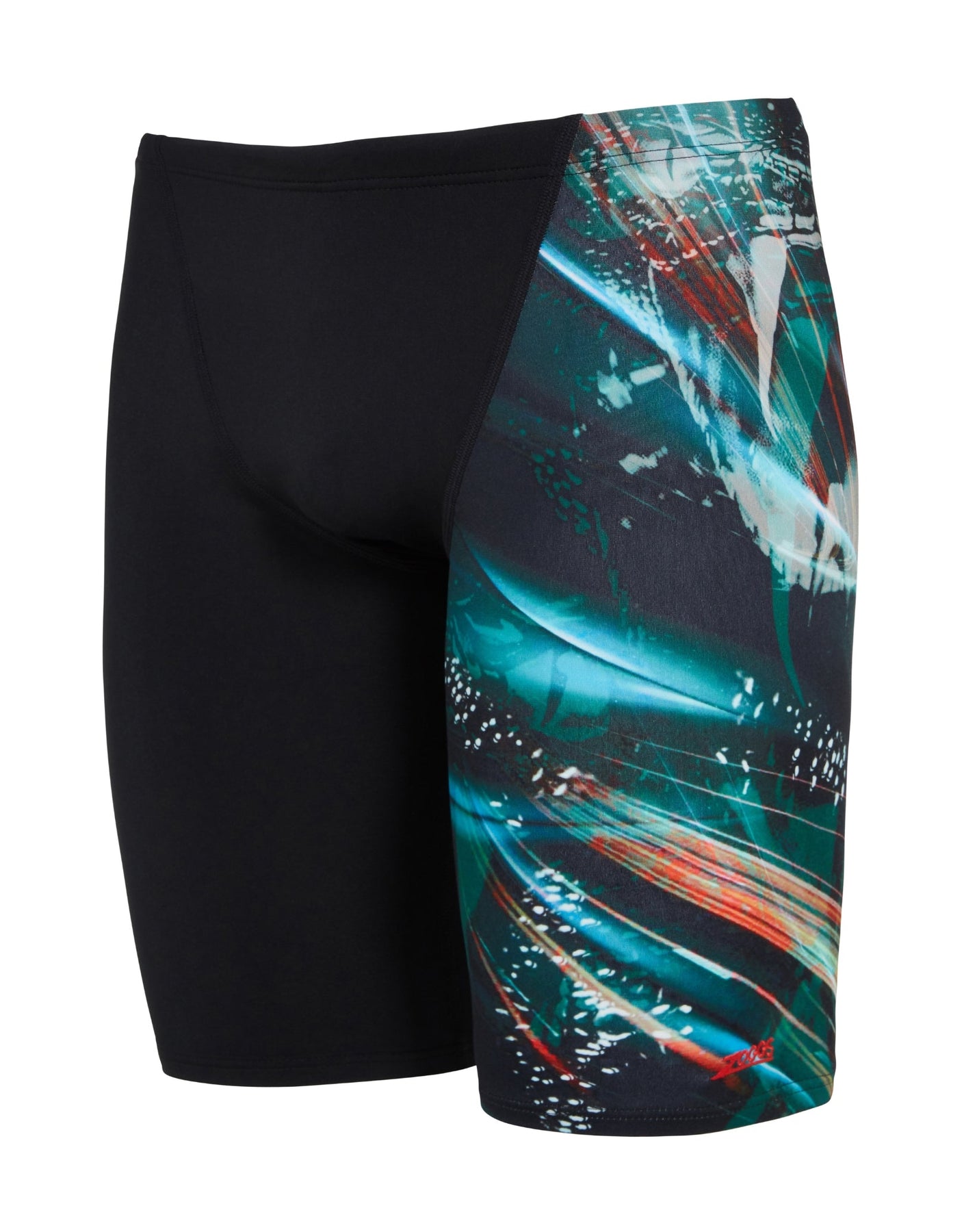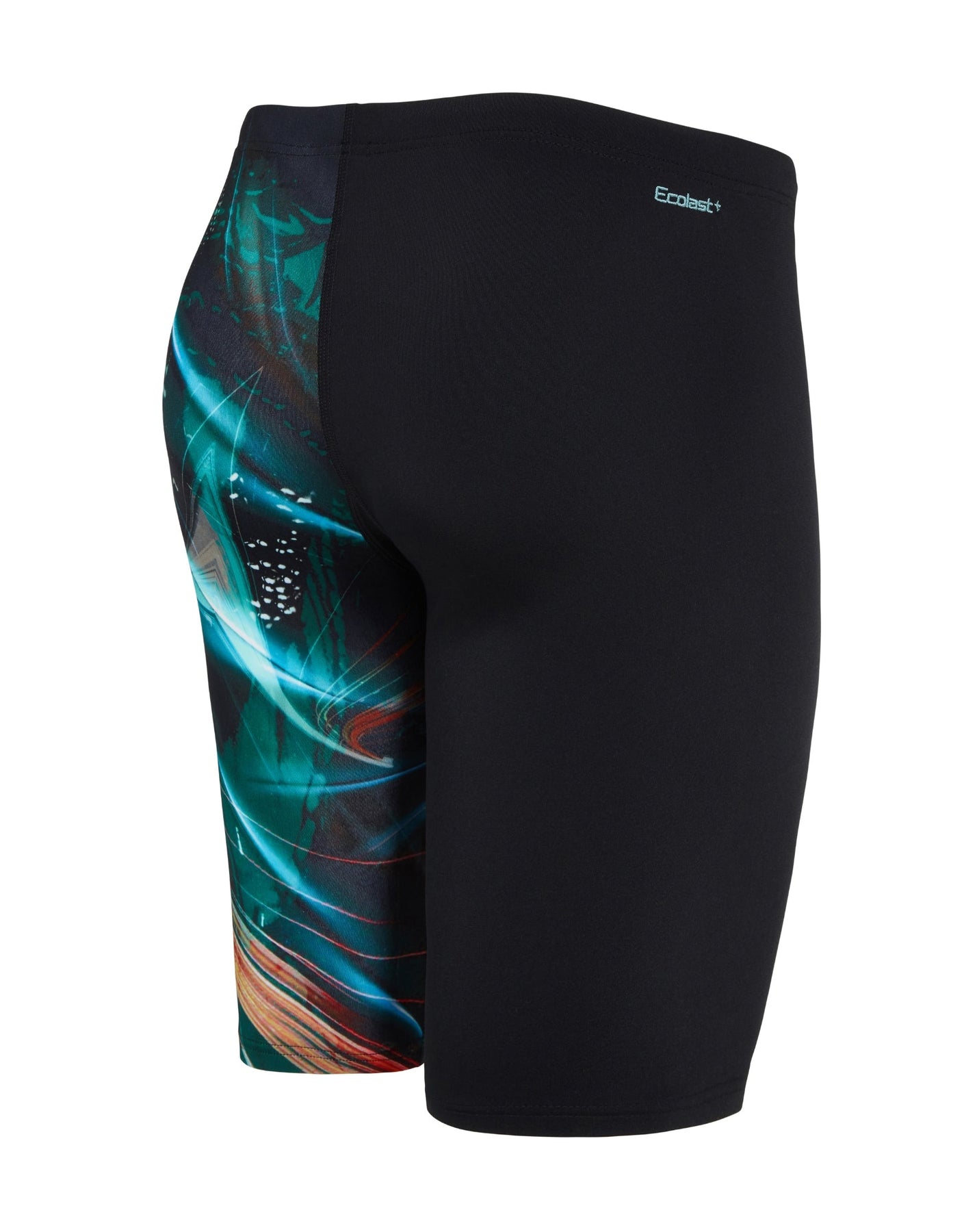 The Viper Jett Swim Jammer from Zoggs features a bold emerald green and yellow print. The triangle front lining provides extra moest and the drawstring ensures a perfect fit. Made from Ecolast+ fabric, the jammers offer 100% chlorine resistance and are quick-drying.
