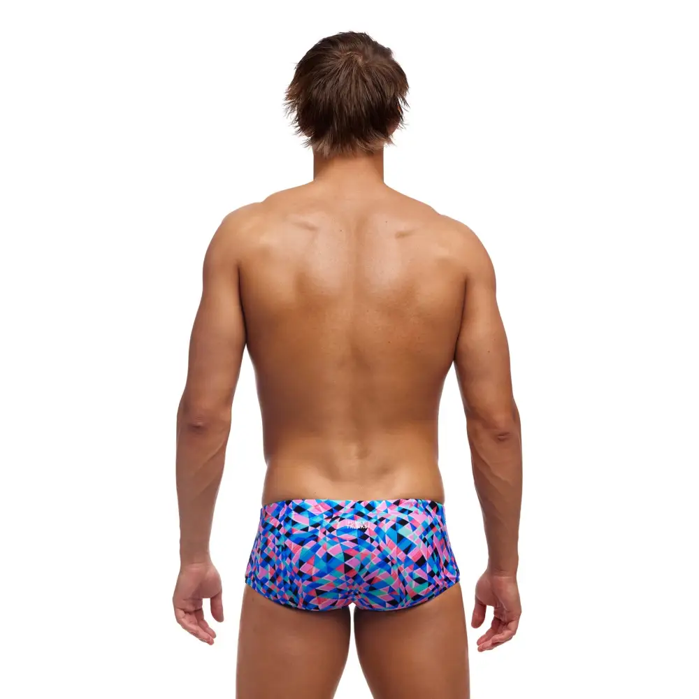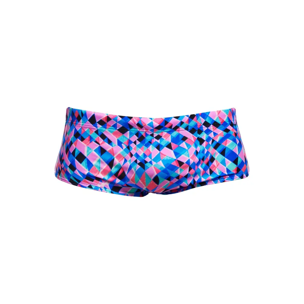 The Warp Tour Sidewinder Trunks from Funky Trunks are made from chlorine-resistant ECO C-Infinity fabric with a graphic, geometric all-over pattern in blues and pinks. The wide elastic leg opening offers comfort while the drawcord waist provides a secure fit. Designed with geometric patterns, these durable trunks are ideal for regular training or swimming sessions.
