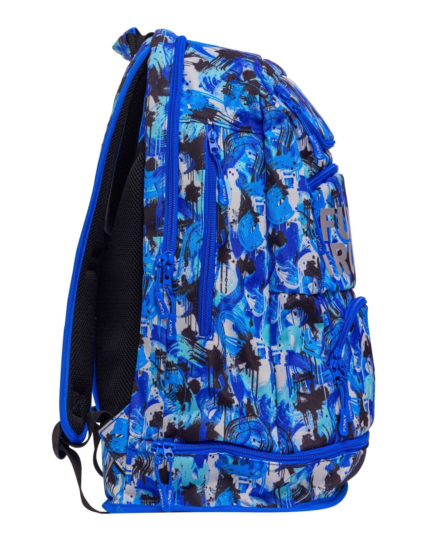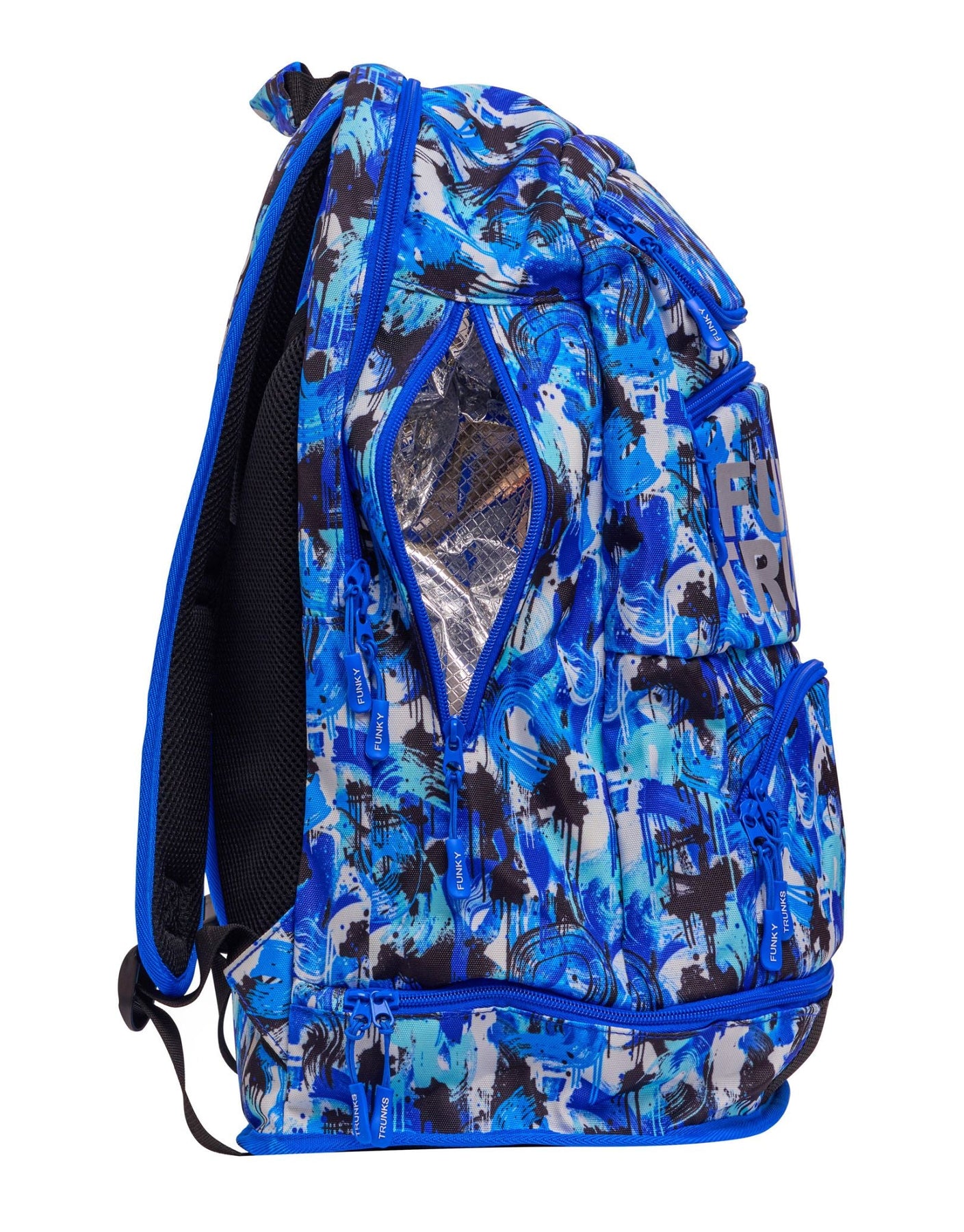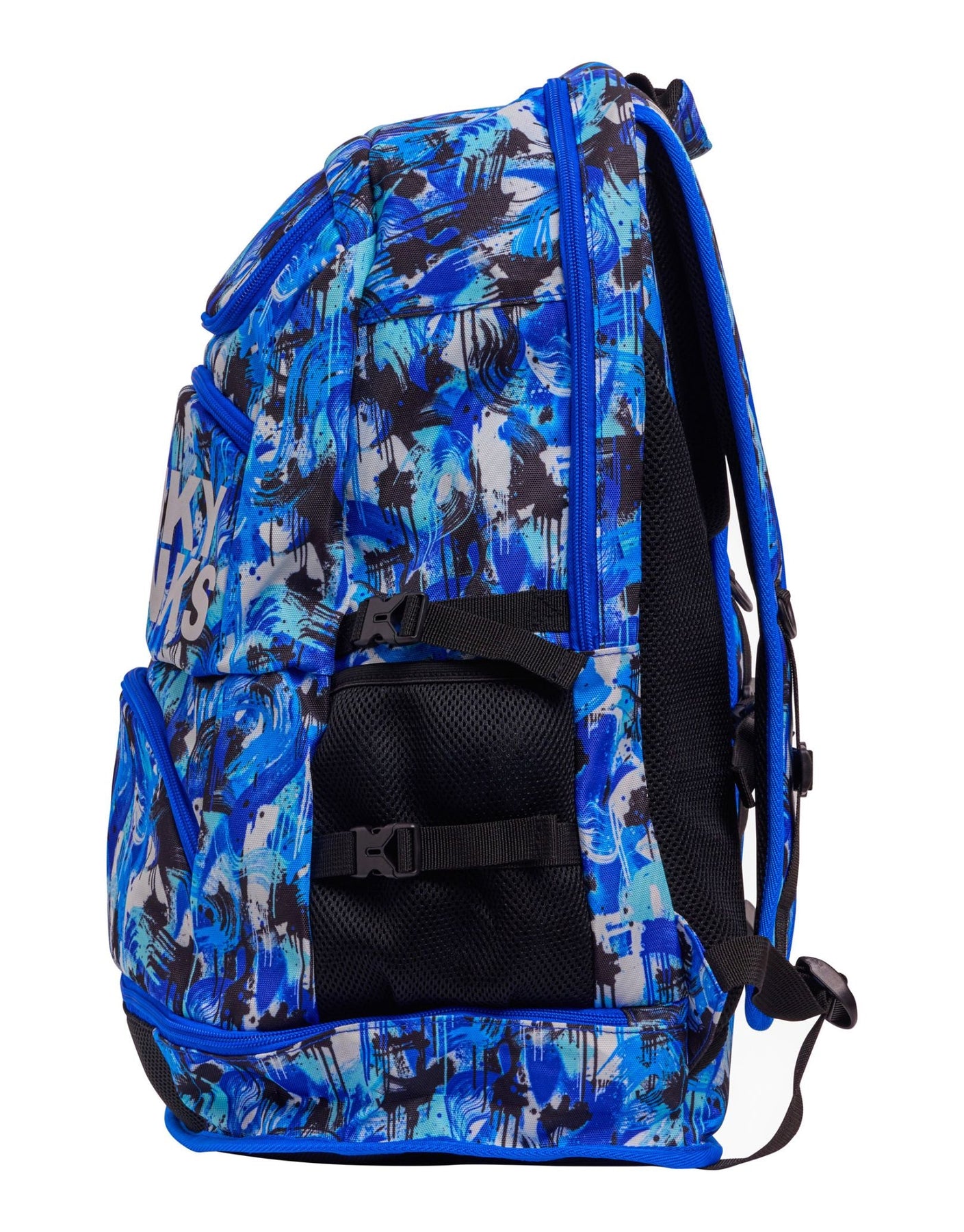 The You Messer Elite Squad 36L Backpack is built for serious swimmers who need smart storage and bold style. Designed with eye-catching blue prints, it offers a spacious 36L capacity and multiple compartments to organize all your swim gear. Features include a waterproof bottom compartment, mesh pocket for wet items, cooler zip pocket for snacks, and a soft-lined section for goggles. The padded back panel and adjustable shoulder straps provide comfort and support during travel or training. Perfect for swim meets, training sessions, or daily pool use, this durable swim backpack keeps everything in one place and ready to go.