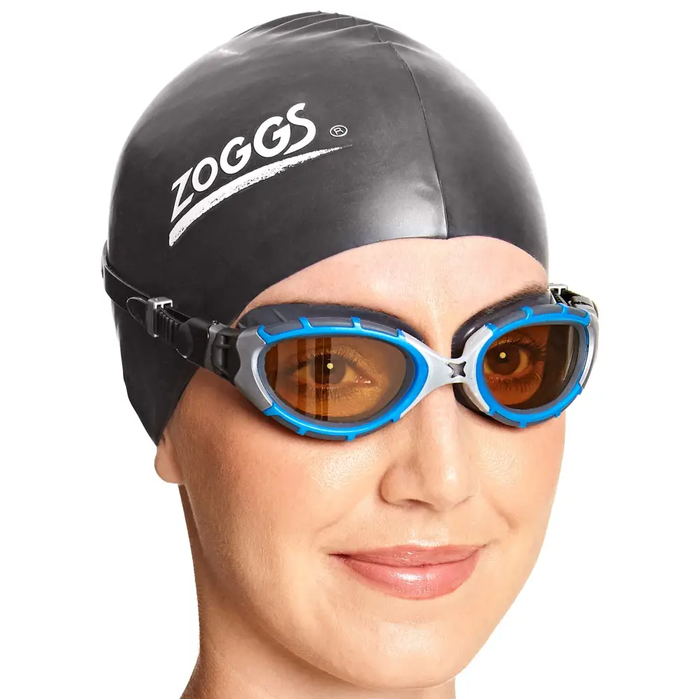 For the most advanced lens performance from your swimming goggles, choose the Zoggs Predator Flex Polarized Ultra Reactor Goggle. The Photochromatic lenses react to changing light conditions and become tinted in bright conditions, yet remain clear in low-level light, making this swim goggle perfect for triathlons and open water swimming. The Flexpoint technology and Ultra Fit make these reactive goggles super comfortable and flexible.